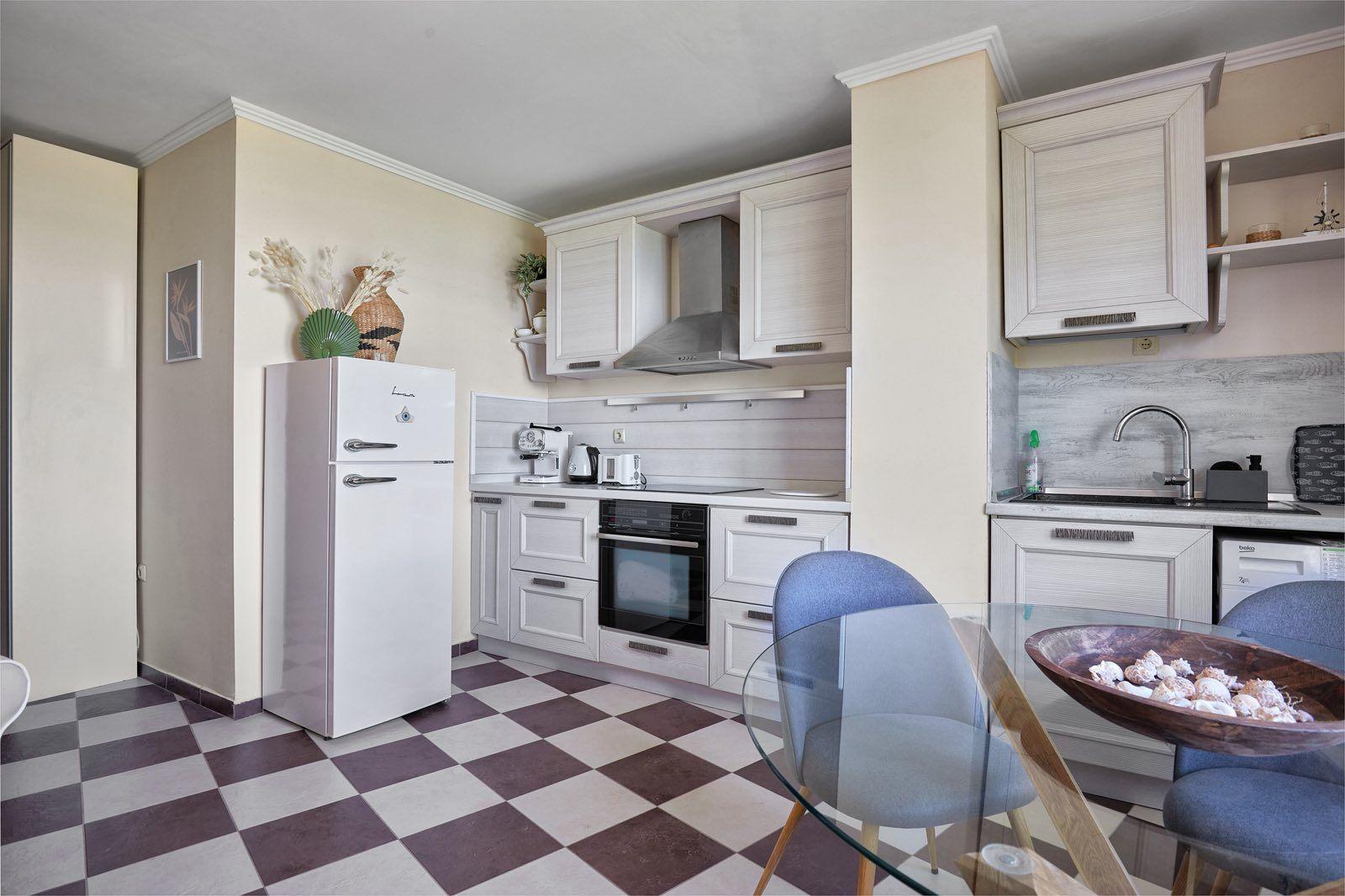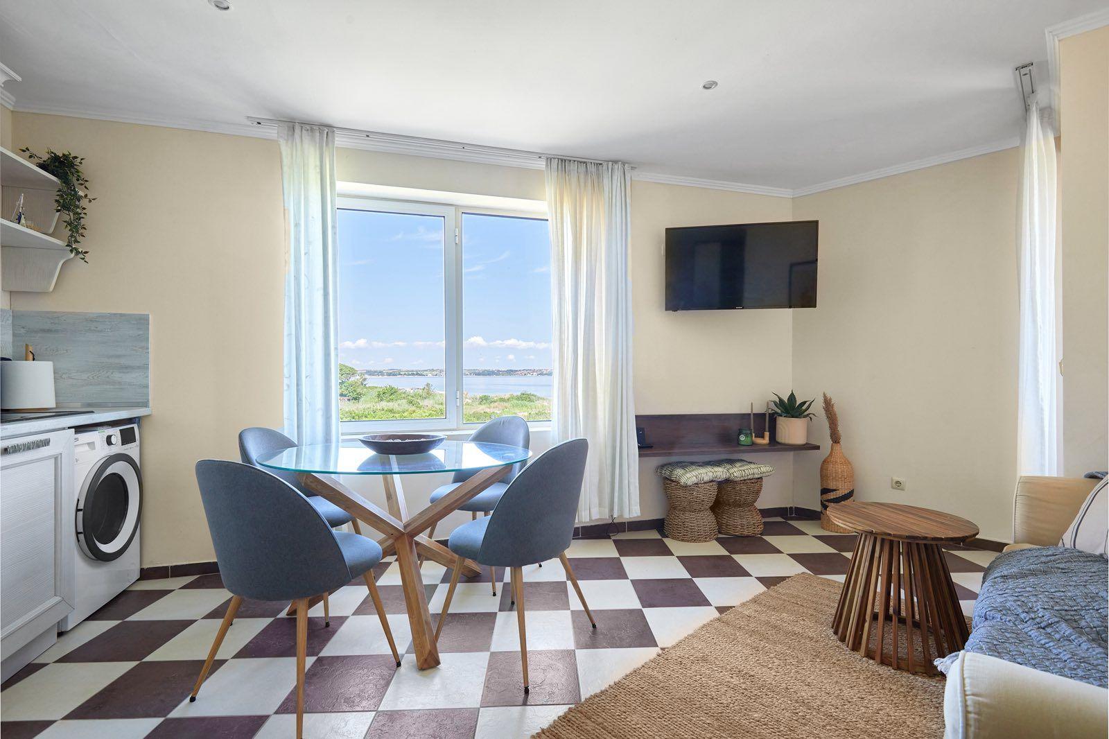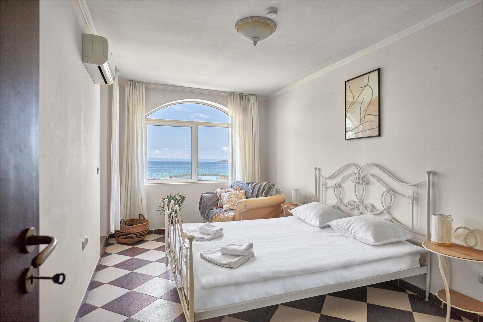 Жилището се предлага напълно обзаведено с подбрани италиански мебели и висок клас немски електроуреди, като от всяка стая се разкрива уникална гледка към морето.
