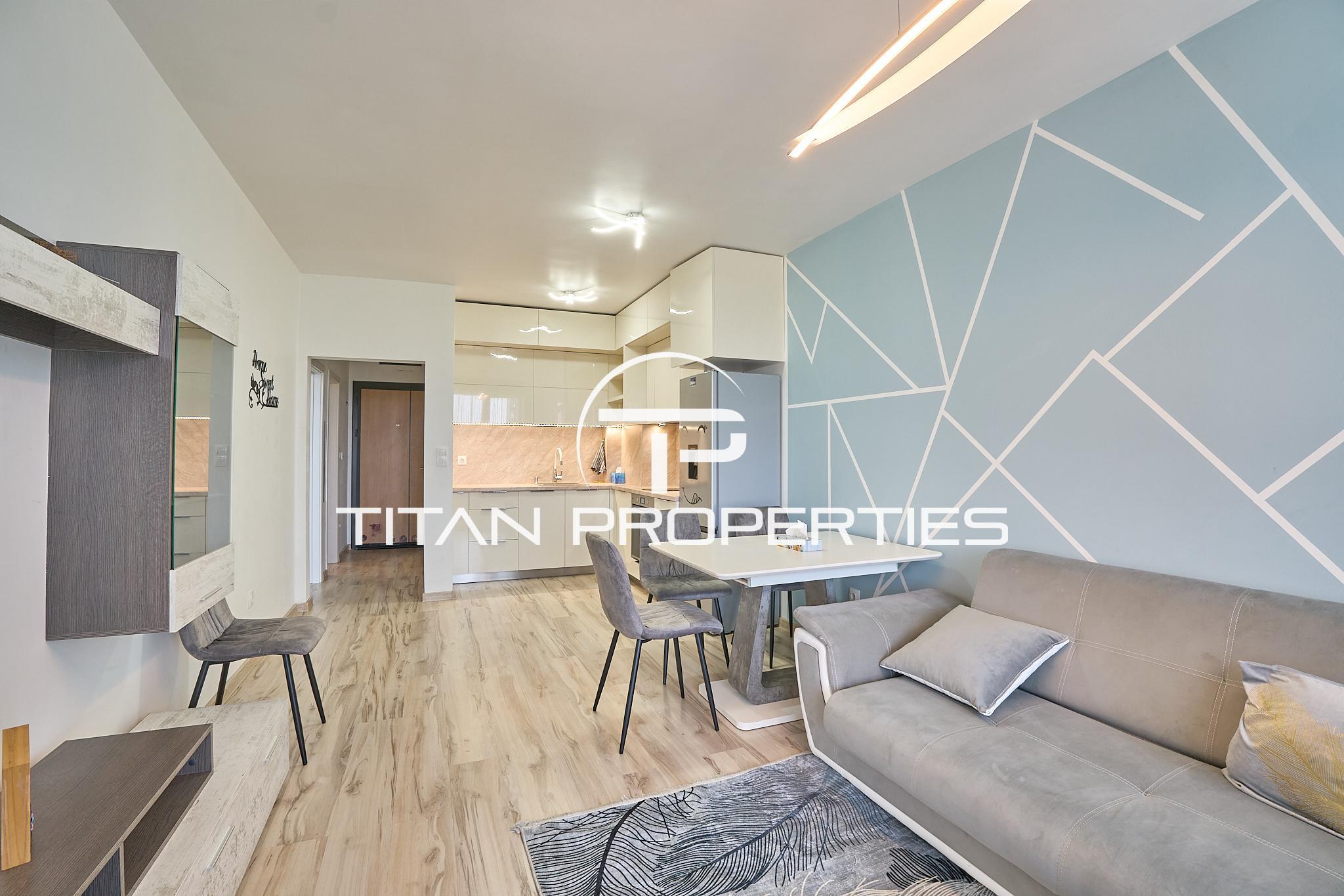 Титан Пропъртис предлага за продажба стилен и напълно обзаведен двустаен апартамент в жк. Тракия. Имотът е разположен в модерен комплекс с денонощна жива охрана, видеонаблюдение, хидравлични асансьори, луксозни общи части и закрит вътрешен двор с детска площадка. Апартаментът е със застроена площ от 63кв.м. и се състои от входно антре, просторна всекидневна с кухненски бокс, уютна спалня, модерна баня с тоалетна и тераса. Жилището е обзаведено със стилни мебели и качествени електроуреди, готово за нанасяне. Към имота има и прилежащо избено помещение с площ от 2,85 кв.м. Отличен избор както за лично ползване, така и за инвестиция с гарантирана доходност. На територията на комплекса ще откриете разнообразие от удобства – търговска зона с магазини, медицинска лаборатория, модерен фитнес център и други полезни услуги. В непосредствена близост има големи хранителни магазини, аптеки, EasyPay, Ритейл парк, автобусни спирки и велоалея, което прави локацията предпочитана и изключително комуникативна. За оглед на това и други атрактивни предложения, не се колебайте да ни потърсите на посочения телефон или да ни изпратите данните си чрез формата за запитване на сайта. Реф. номер: 2093159