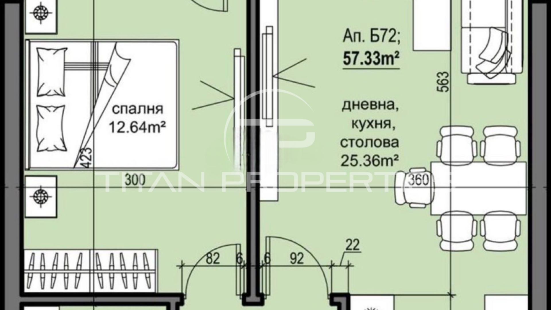 Титан Пропъртис има удоволствието да Ви представи двустаен апаратамент в новопостроен комплекс, находящ се в кв. Христо Смирненски, в близост до търговски обекти, мазазини, аптеки, спирки на градски транспорт.