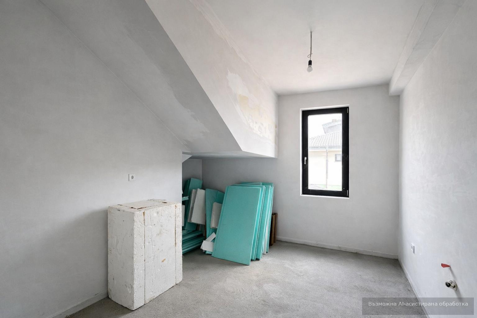 Първи етаж – килер, просторна трапезария с кухненски бокс, кабинет и баня с тоалетна;