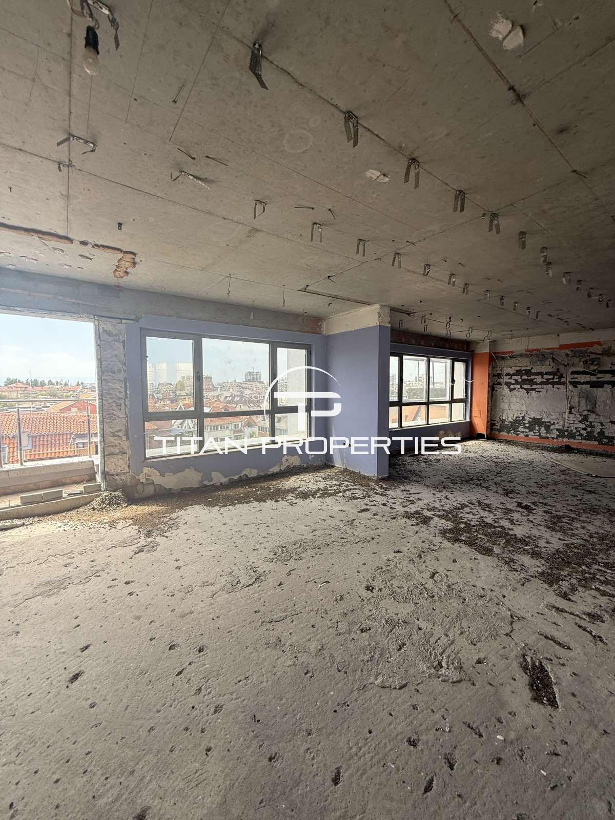 Титан Пропъртис предлага за продажба просторен ОФИС в сърцето на кв. Кършияка – само на метри от Новотел Пловдив, хотел Марица и Пловдивския панаир. Отлична локация с лесен достъп до главната улица, фитнес зали, заведения и всички удобства на централната градска част. Помещението е разположено на 8-ми етаж в модерна сграда и предлага простор от 325,80 кв.м с функционално разпределение: просторно търговско помещение, 3 санитарни възела и тераса. За оглед на това и други атрактивни предложения, не се колебайте да ни потърсите на посочения телефон или да ни изпратите данните си чрез формата за запитване на сайта. Реф. номер: 2095171