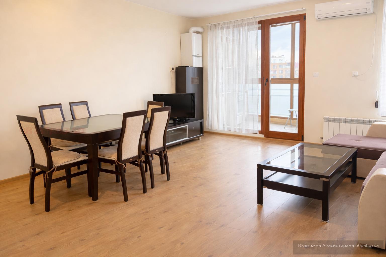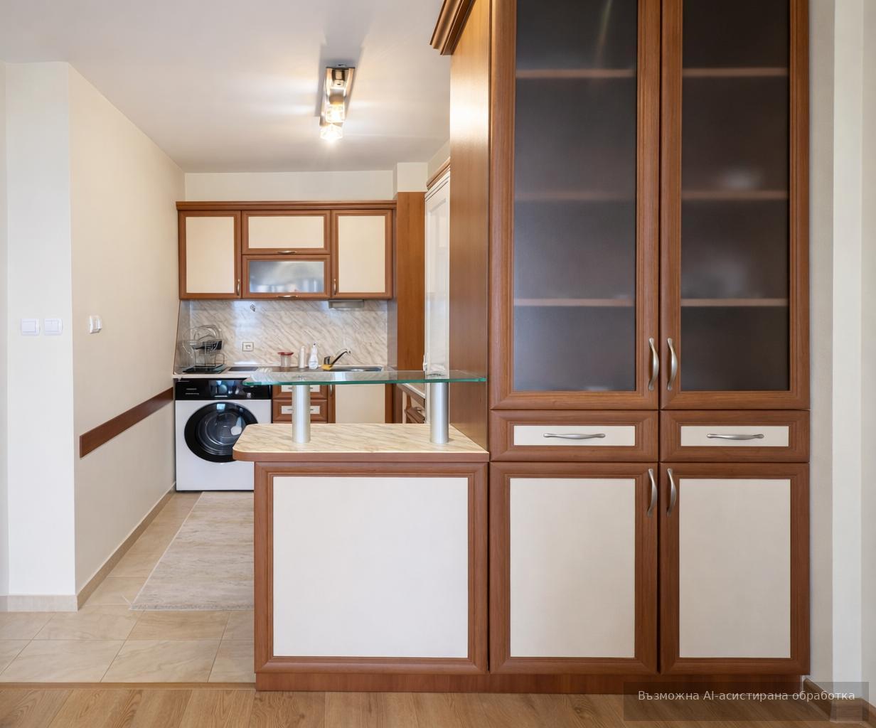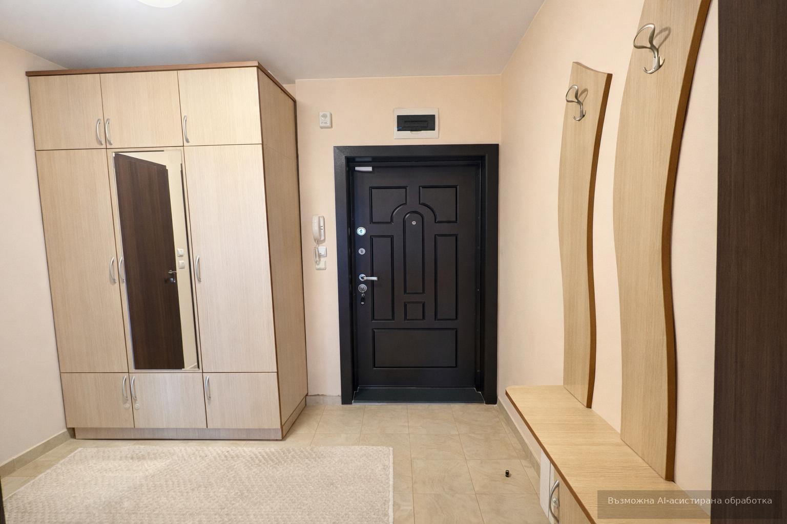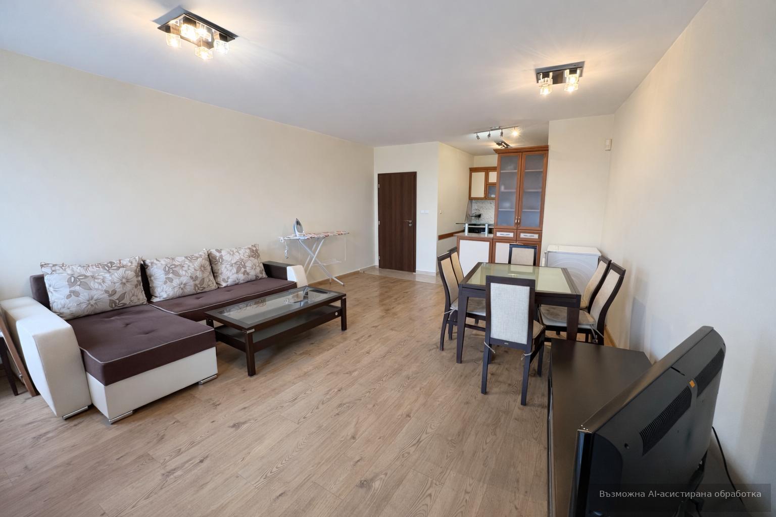 Разпределението включва входно антре, хол с кухненски бокс, една спалня и баня с тоалетна. Апартаментът е напълно обзаведен и отопляем с електричество, което гарантира комфорт и удобство. Идеален избор за семейство или за отдаване под наем с дългосрочна перспектива.