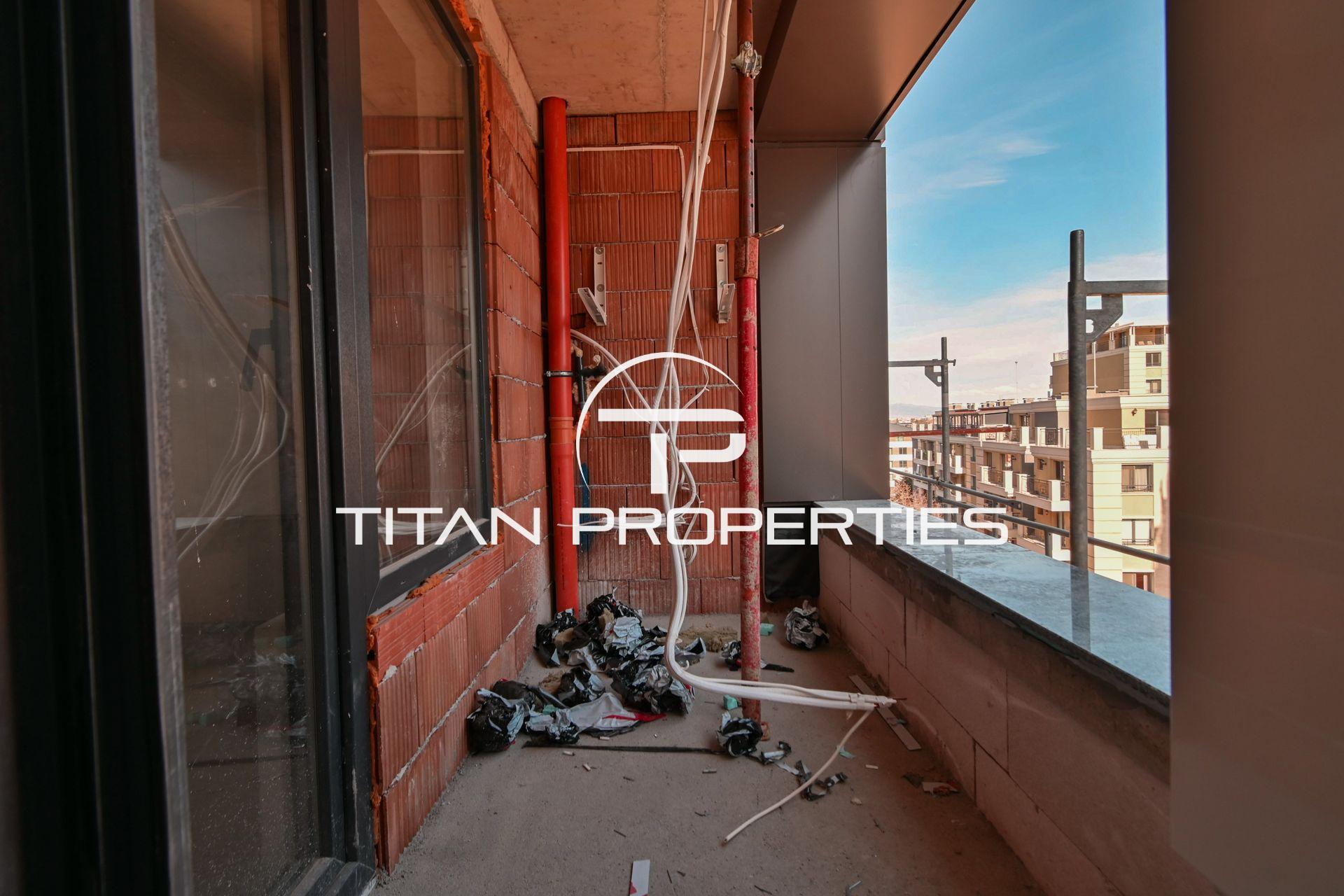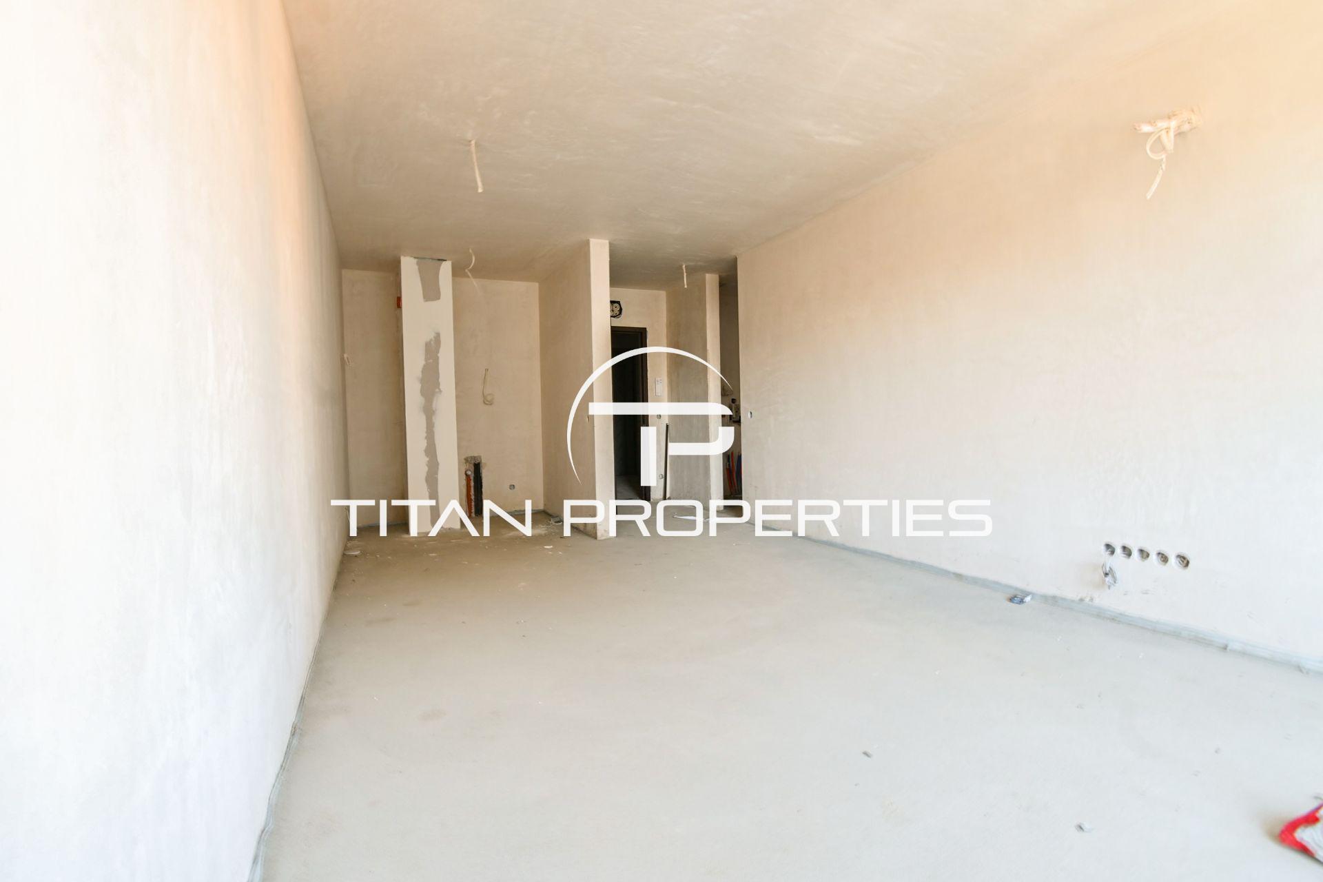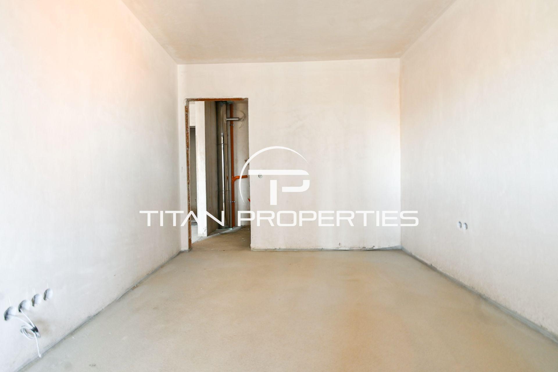 Титан Пропъртис офис - Бул.България с радост предлага на Вашето внимание двустаен апартамент за продажба в кв. Овча купел. Жилището е със застроена площ 53,65 кв.м. и се намира на 8-ми етаж от общо 10 в нова сграда на етап Акт 14, която ще бъде въведена в експлоатация (Акт 16) края на 2026 г. Източно-южното изложение осигурява обилна дневна светлина. Разпределението включва входно антре, хол с кухненски бокс, спалня, баня с тоалетна, складово помещение и балкон. Отоплява се на газ, което гарантира икономичност и удобство. Имотът е на шпакловка и замазка, което позволява довършване и обзавеждане изцяло по ваш вкус. Жилището се издава с прекарани изводи и предвидени стойки за климатична система.