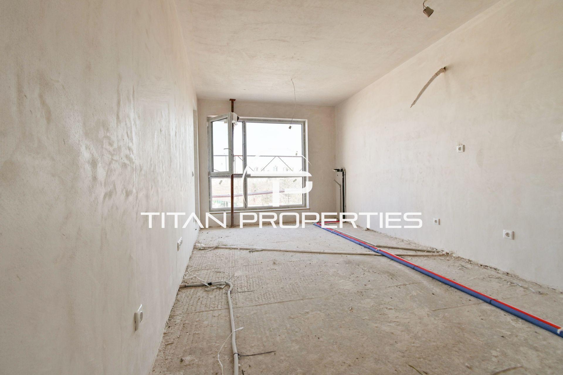 Титан Пропъртис офис - Бул.България с радост предлага на Вашето внимание двустаен апартамент за продажба в ж.к. Студентски град. Жилището със застроена площ 60 кв.м се намира на трети етаж в нова шестетажна сграда на етап Акт 15, която ще бъде въведена в експлоатация (Акт 16) края на 2026 г. Източното и южно изложение гарантира отлична осветеност през целия ден. Разпределението включва входно антре, просторен хол, спалня, мокро помещение, баня с тоалетна и тераса. Отоплението е на електричество. Апартаментът е на ш.з., което ви дава свобода да го довършите според личните предпочитания. Сградата отговаря на съвременни стандарти за качество и комфорт. Има възможност за закупуване на гараж 20 кв.м на цена от 45 000 евро.