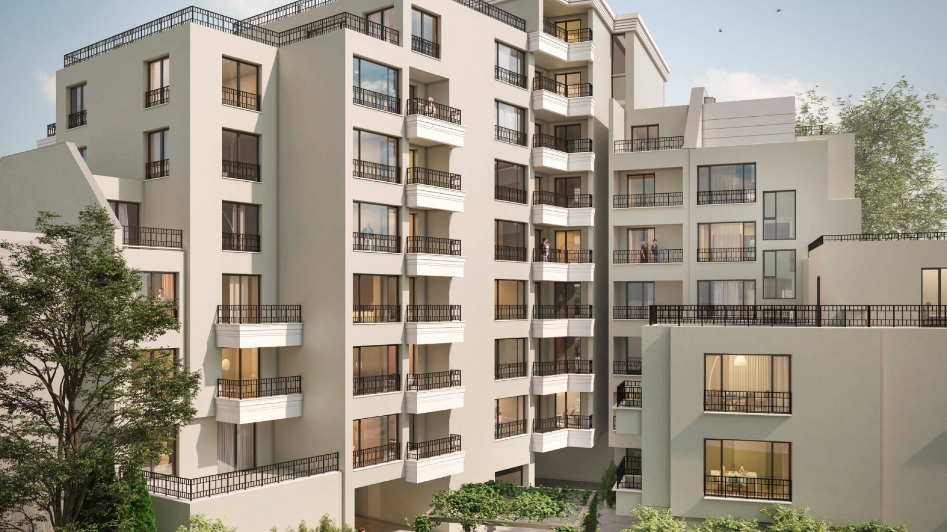 Сградата е с 2 подземните нива за паркиране, достъпът до които е по полегата рампа, както и паркоместа и индивидуални гаражи във вътрешния двор на сградата. Предвидено е богато озеленяване, съчетаващо се с естествените елементи по фасадата, което създава неповторимо усещане за престиж, уют и спокойствие в централната градска среда.