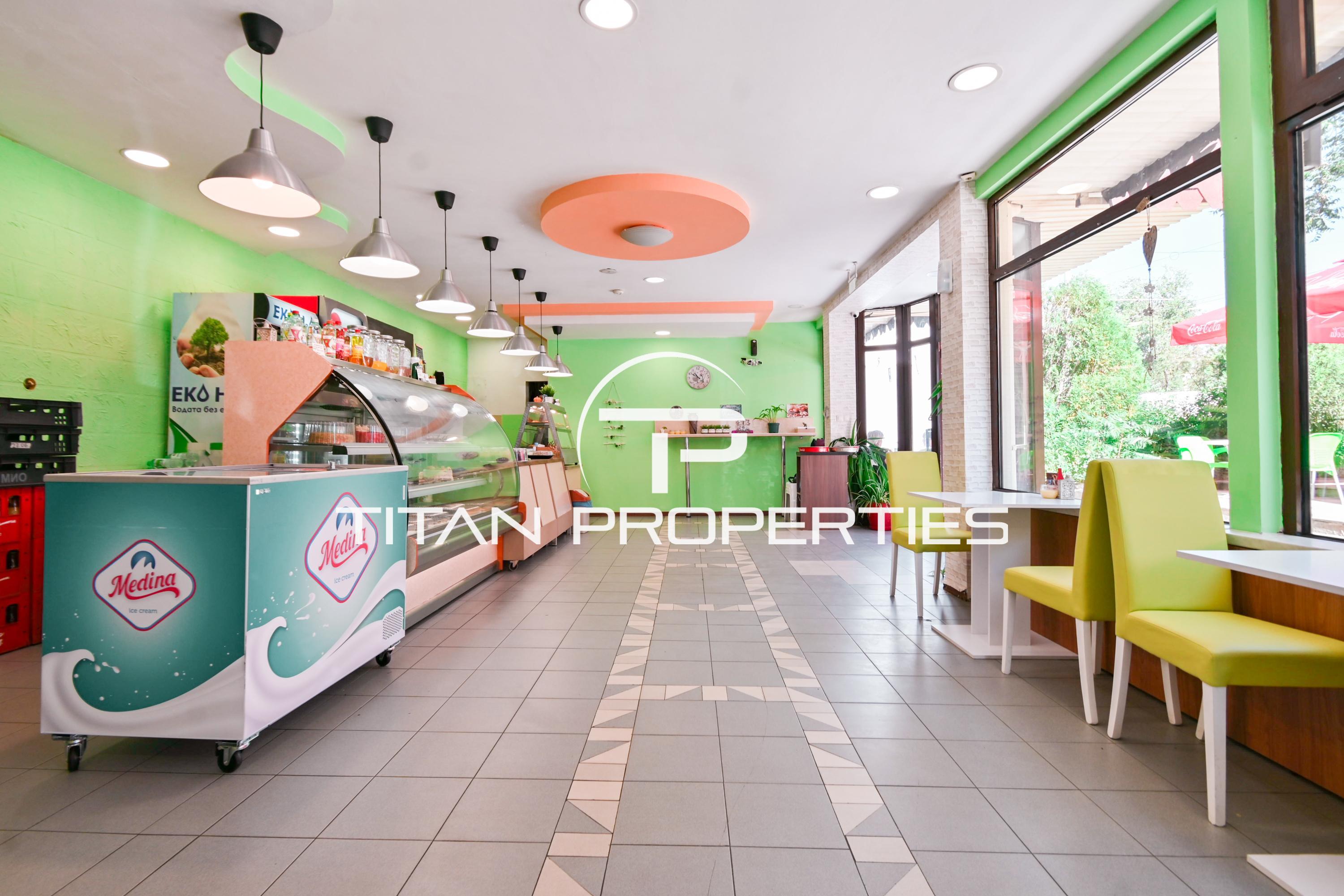 Имотът предлага функционално разпределение и отлични условия за развитие на разнообразни бизнес дейности. Налични са всички необходими инсталации – ВиК, ел., аспирация и вентилация, СОТ, интернет и озвучаване, както и качествена дограма със стъклопакет с нискоемисионно стъкло. Разпределението позволява комбиниране на производство, заведение и/или търговска дейност. Обектът е с 18 метра лице и големи витрини, осигуряващи отлична видимост и рекламна площ.