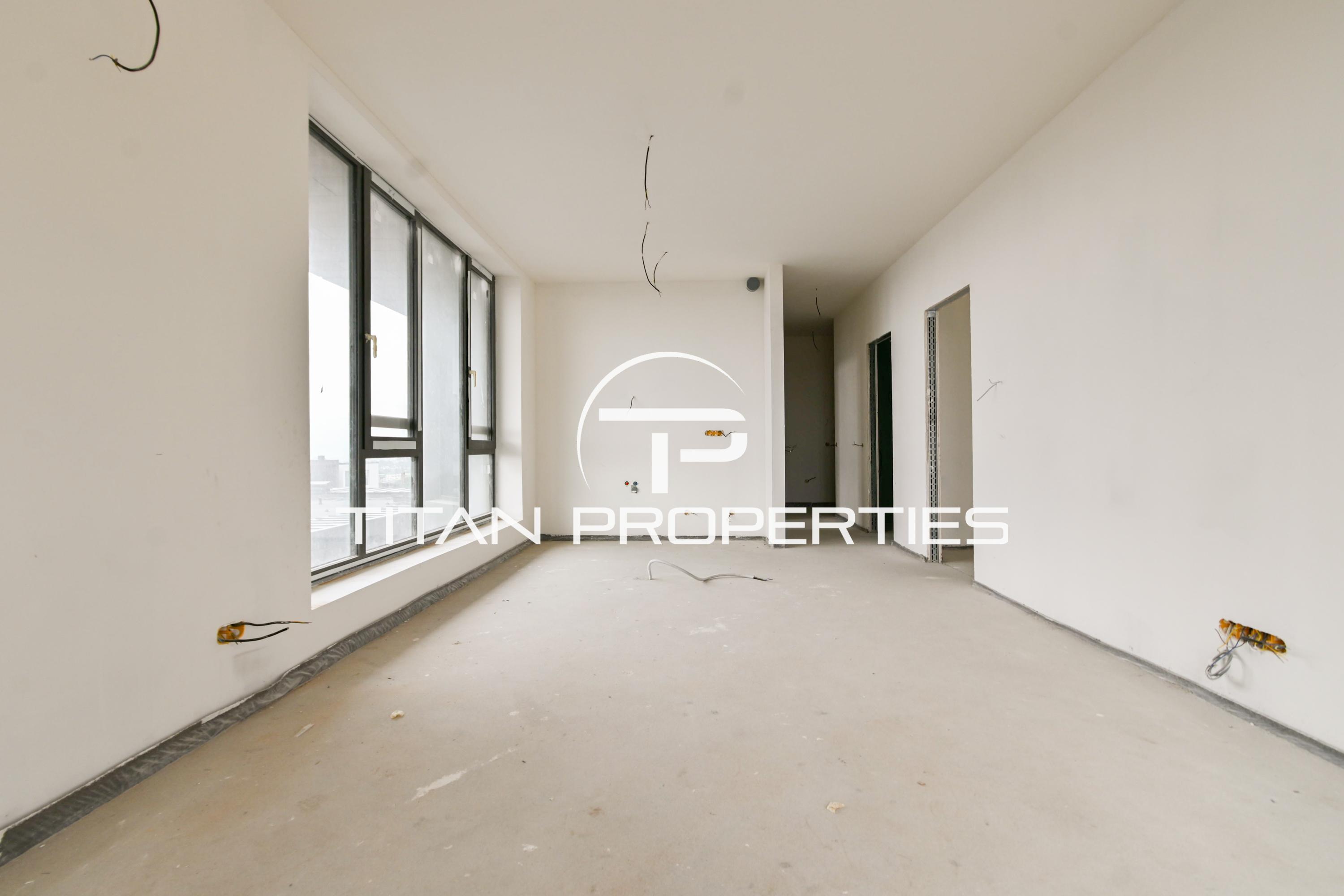 Титан Пропъртис - офис Младост с радост предлага на Вашето внимание тристаен апартамент за продажба в жк. Кръстова вада, София. Жилището с площ от 124 кв.м е разположено на 8-ми етаж от общо 15 в нова сграда (2024 г.). Изложението е Запад/Север. Разпределението включва просторна дневна с кухня (23 кв.м.), две спални (12 кв.м. и 17 кв.м.), две бани с тоалетна (4 кв.м. и 5 кв.м.), мокро помещение (2 кв.м.) и тераса с гледка към Витоша (4 кв.м.). Отоплението е на електричество, имотът е на шпакловка и замазка.