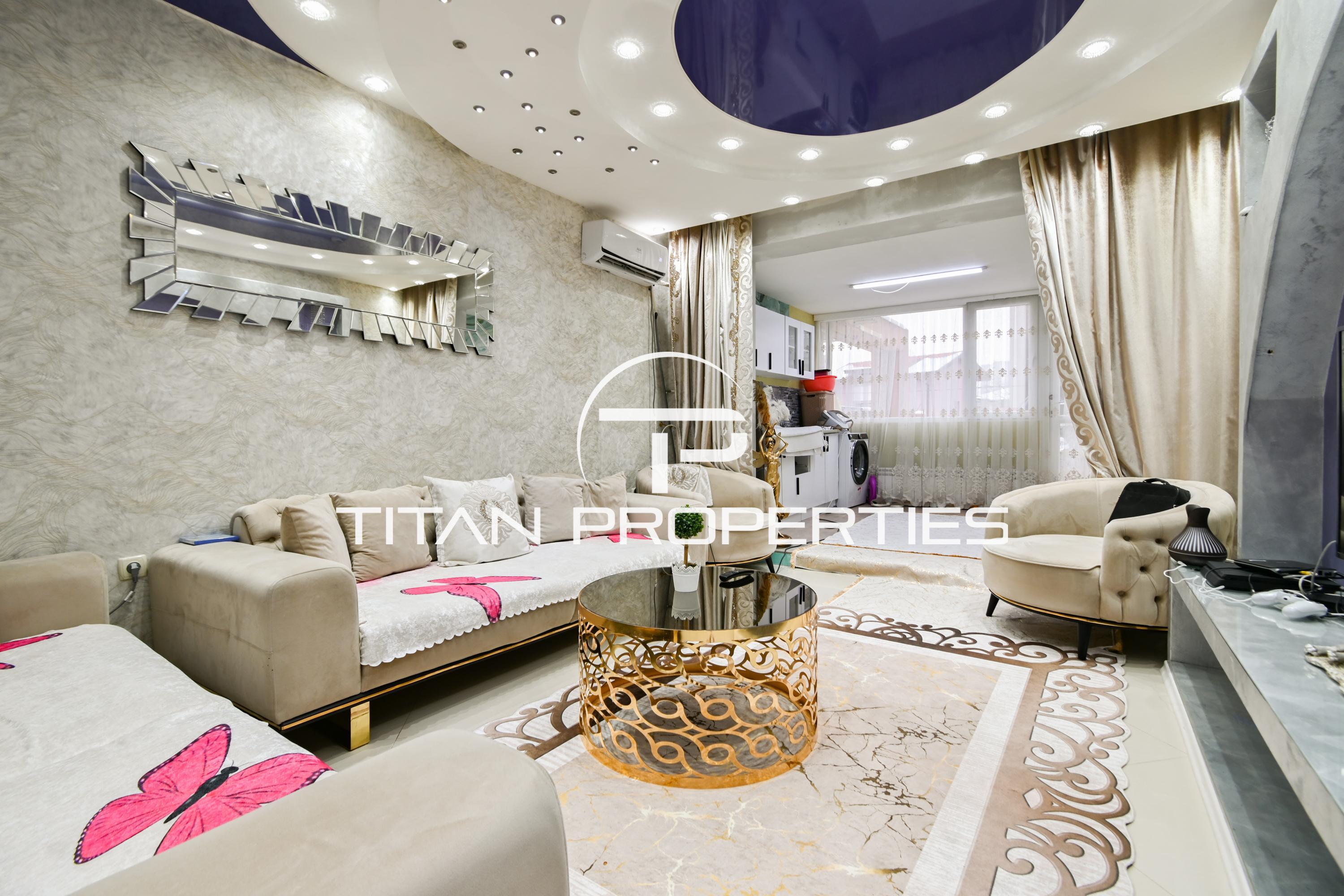 Титан Пропъртис - офис бул,България има удоволствието да Ви представи тристаен апартамент в ж.к. Свобода. Мястото е комуникативно, в близост до спирки на градски транспорт, детски градини, училища, медицински центрове, търговски обекти, Северен парк и други удобства. Апартаментът е разположен на първи жилищен етаж и разполага с площ от 160 кв.м от които 117кв.м. – застроена площ. Сградата е с Акт 16 от 2007г. Разпределението както следва е: входно антре, дневна с трапезария и кухненски бокс , две спални , две бани с тоалетни, склад и две тераси. Отоплението е на ТЕЦ , а за удобство през лятото е поставен климатик в хола.Изложението е север/юг/изток. Жилището се продава обзаведено и оборудвано с всичко необходимо – така , както го виждате на снимки. За повече информация или оглед на това и други атрактивни предложения, моля свържете се с нас на посочения телефон. Реф. Номер: 2086361