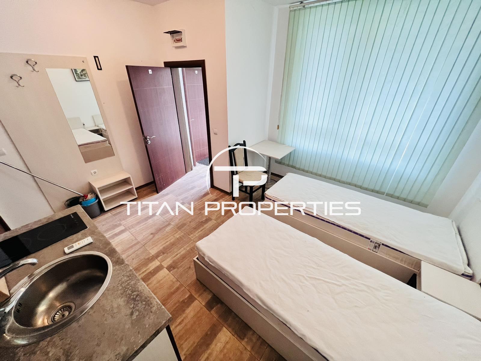 Открийте мястото, където ще се чувствате у дома от първия момент. Титан Пропъртис с радост предлага на Вашето внимание този чудесен едностаен апартамент под наем, разположен в к.к. Слънчев бряг, Бургас. Намира се в близост до хранителни магазини, автобусни спирки, заведения и др. Имотът разполага с площ от 20 кв.м. и е разположен на партерно ниво в 7 етажна сграда. Разпределението включва: еднопространствено помещение с кухненски бокс и две легла, баня с тоалетна и тераса. Имотът е напълно обзаведен и готов за нанасяне, което означава, че веднага ще се чувствате у дома. Отоплението е решено с ток, а удобството на малкото пространство е допълнително предимство за съвременния начин на живот. Имкотът може да бъде нает и за краткосрочно, като цената му е различна! "С нас, вашето търсене на имот завършва с усмивка." За оглед на това и други атрактивни предложения, не се колебайте да ни потърсите на посочения телефон или да ни изпратите данните си чрез формата за запитване на сайта. Реф. номер: 2201900