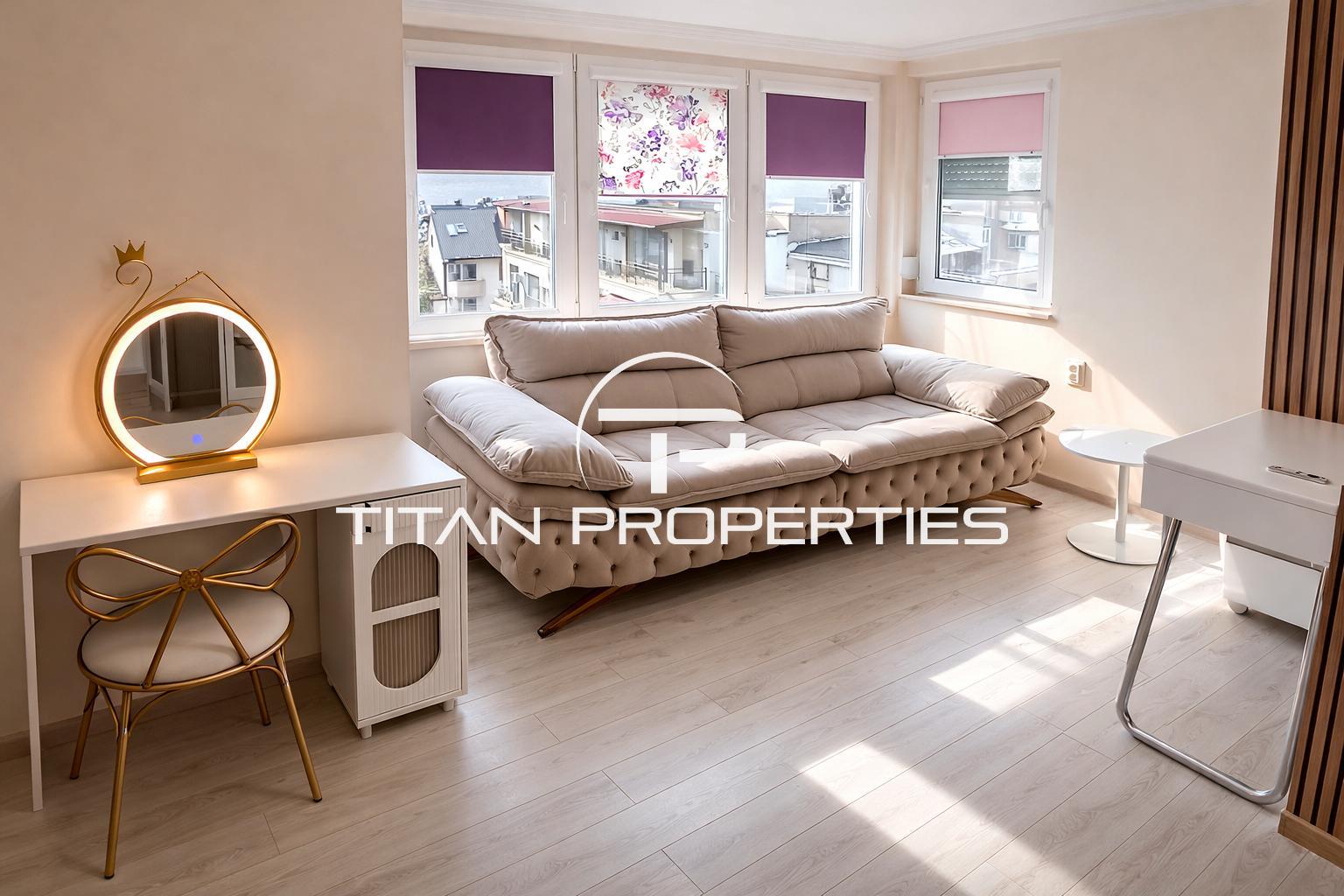 Жилището се предлага напълно обзаведено и оборудвано с висок клас електроуреди, включително съдомиялна, сушилня, смарт хладилник, както и 3 броя инверторни климатици.