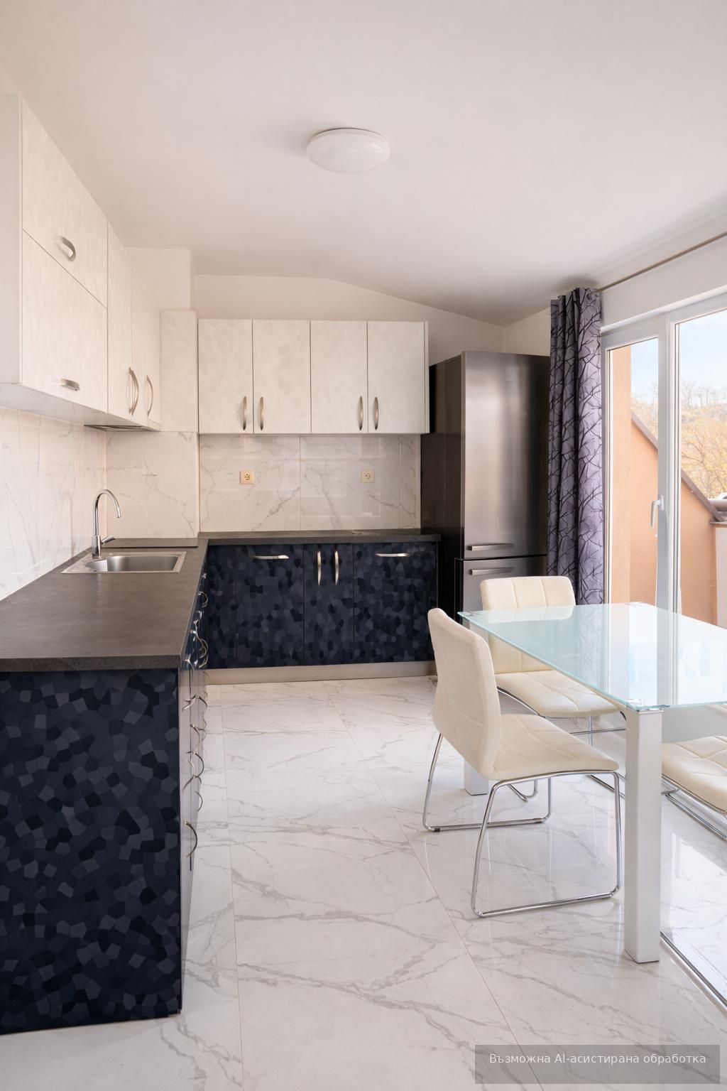 Жилището се предлага напълно обзаведено с чисто нови мебели и висок клас електроуреди. Оборудвано е с инверторни климатици във всички помещения и отлична изолация, гарантираща комфорт през всички сезони.