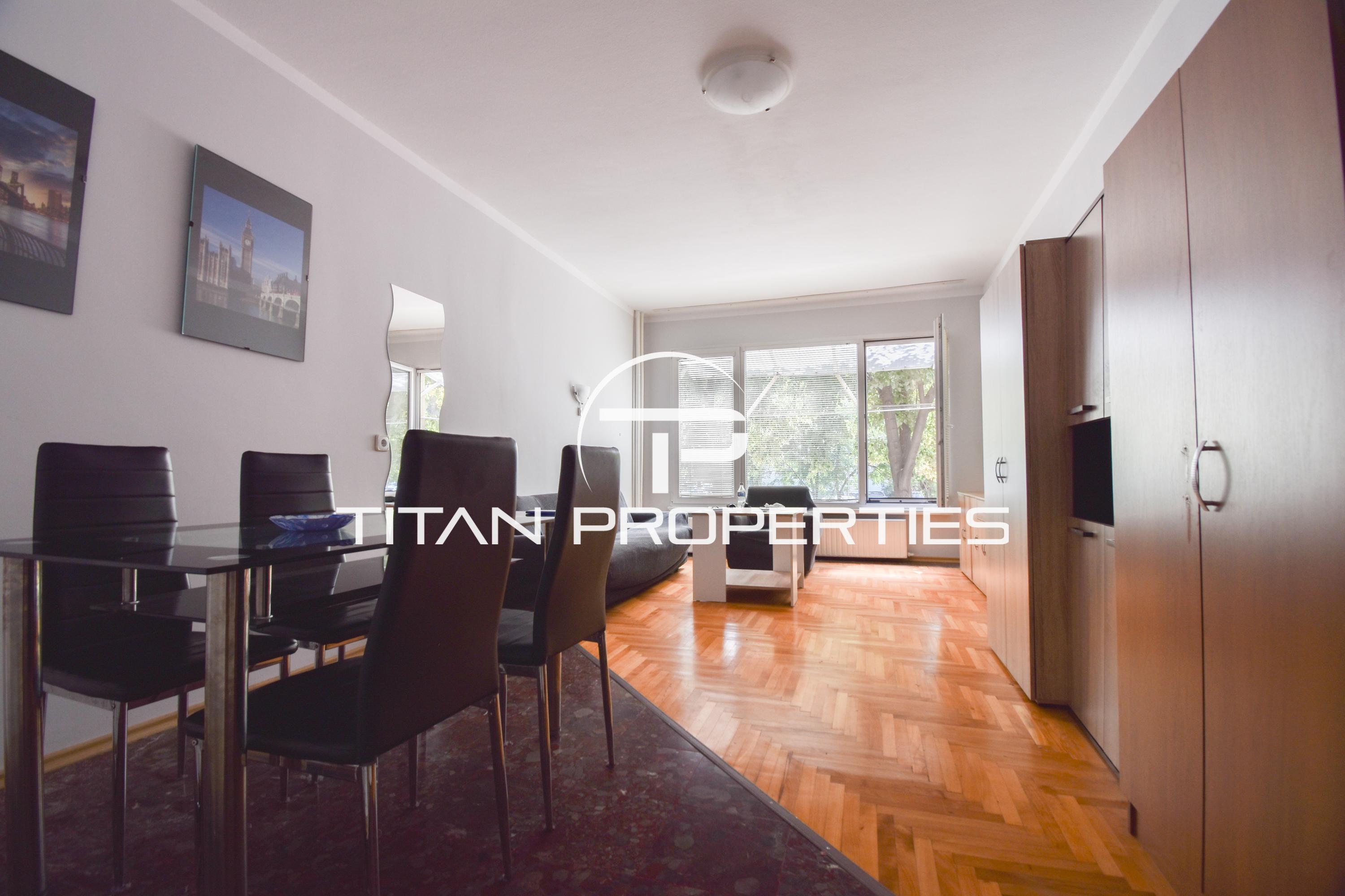 Титан Пропъртис - офис Хиподрума с радост предлага на Вашето внимание двустаен апартамент под наем в кв. Стрелбище, София.