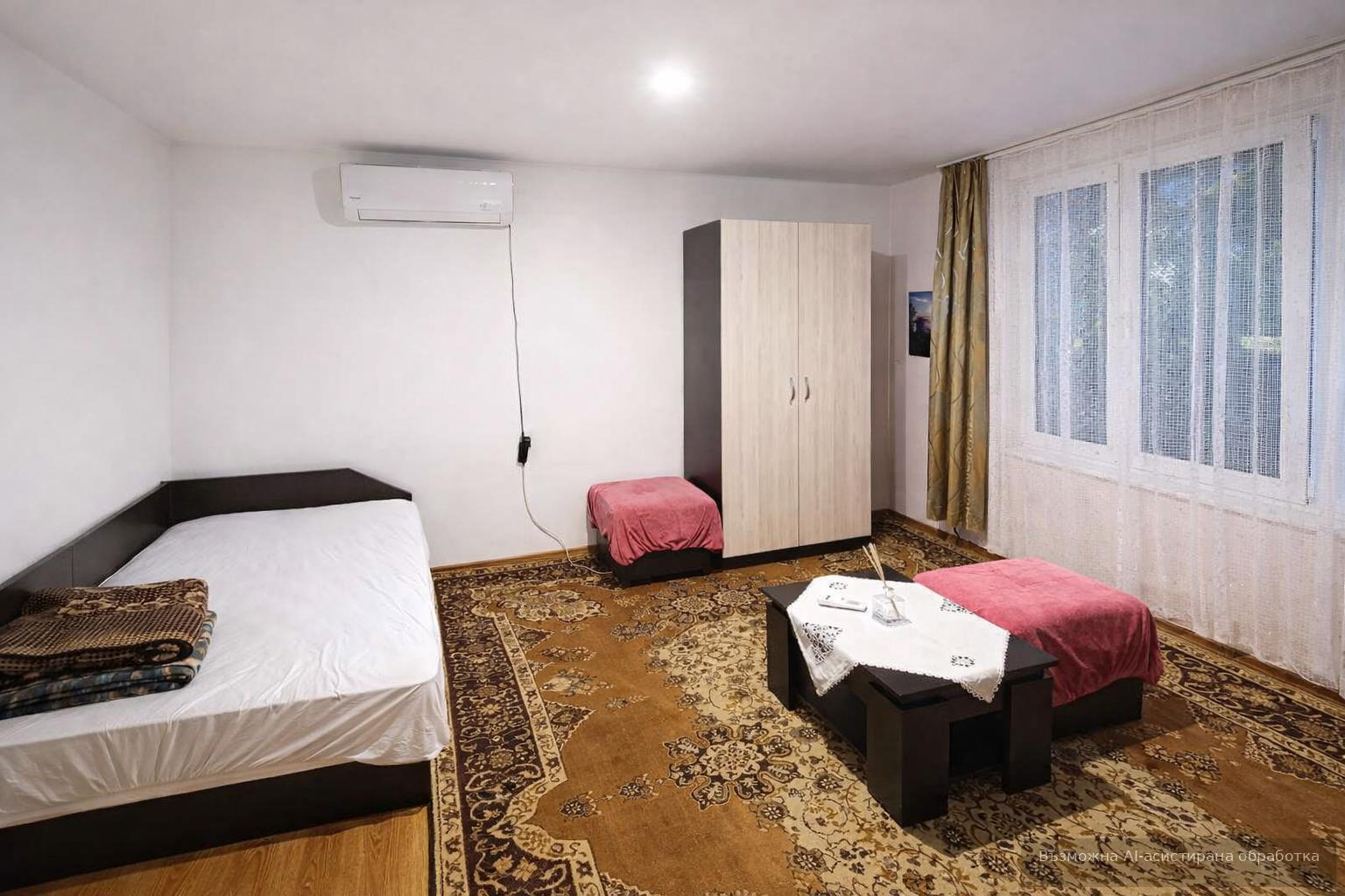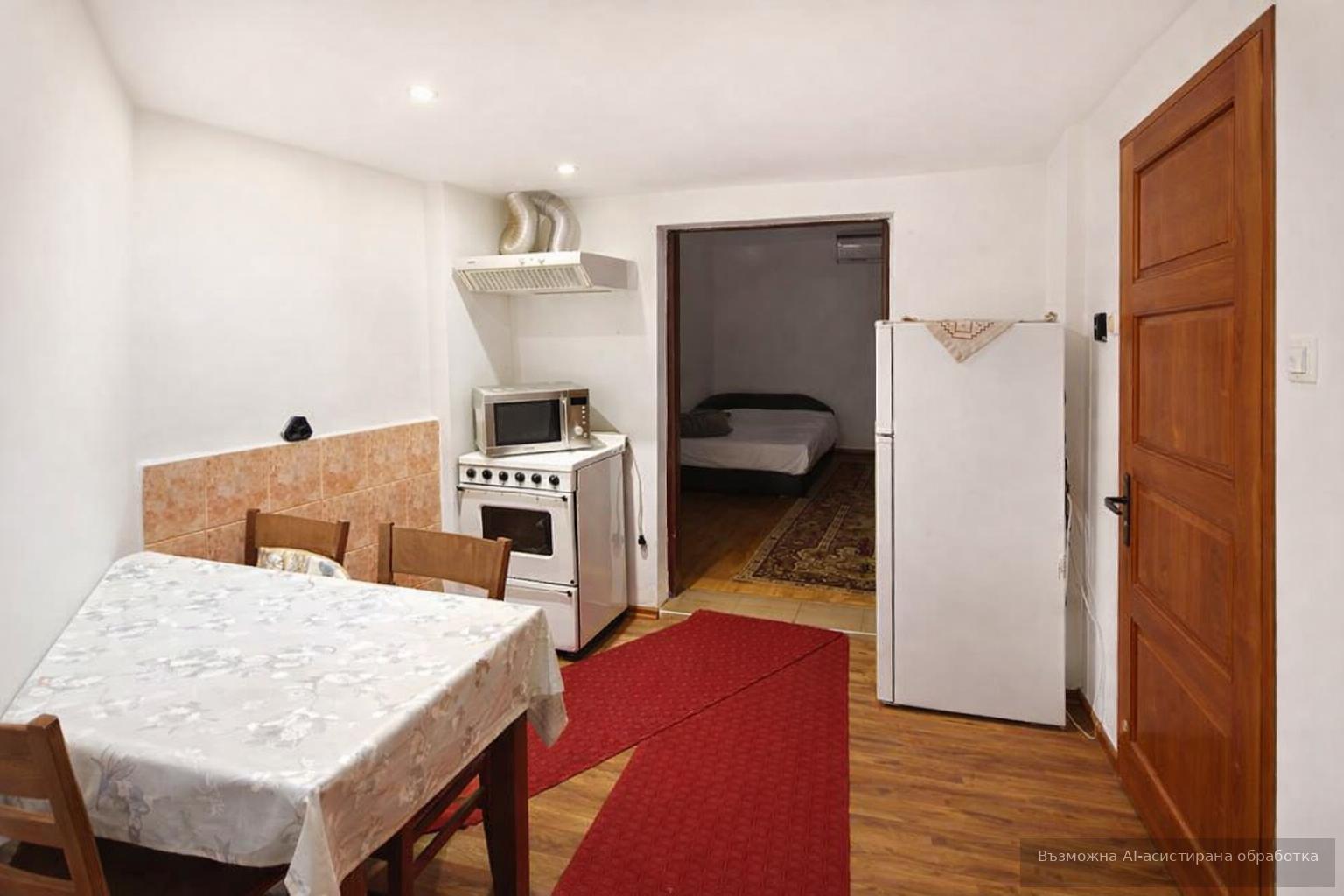 Разпределението включва голяма стая, отделна кухня, антре, баня с тоалетна и собствен двор, който предоставя възможност за отдих на открито. Жилището е напълно обзаведено и разполага с електрическо отопление, гарантиращо лесна поддръжка.