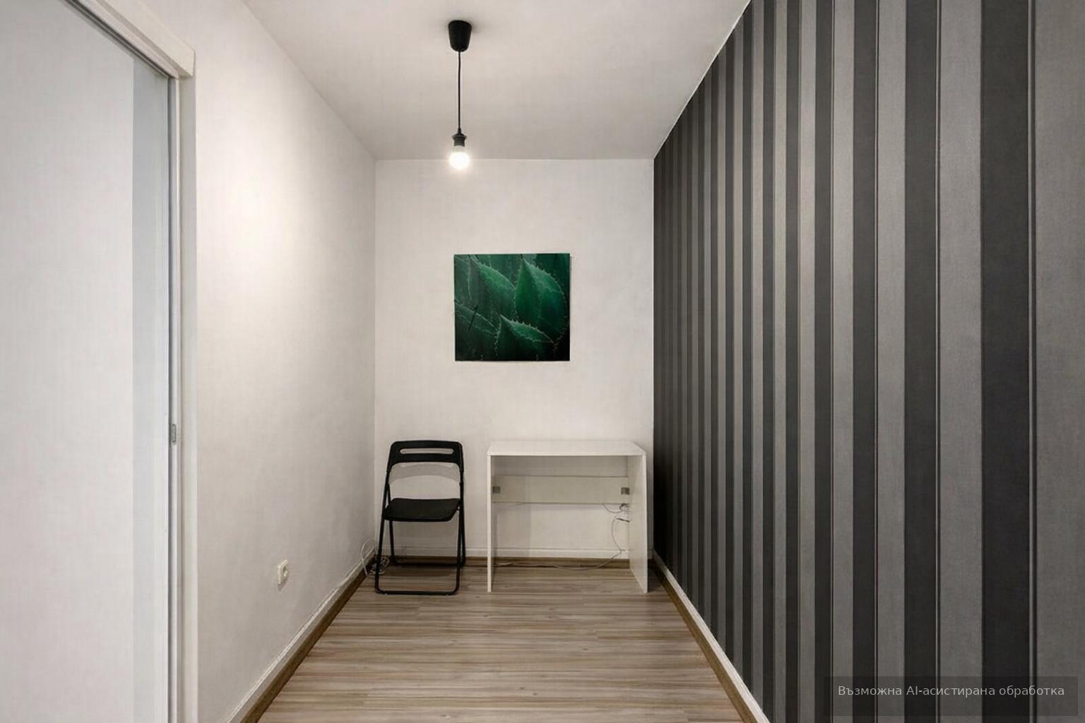 Разпределението съдържа собствен вход, голяма работна стая, коридор и баня с тоалетна. Отоплението е на ток, а климатикът гарантира комфорт през всички сезони.