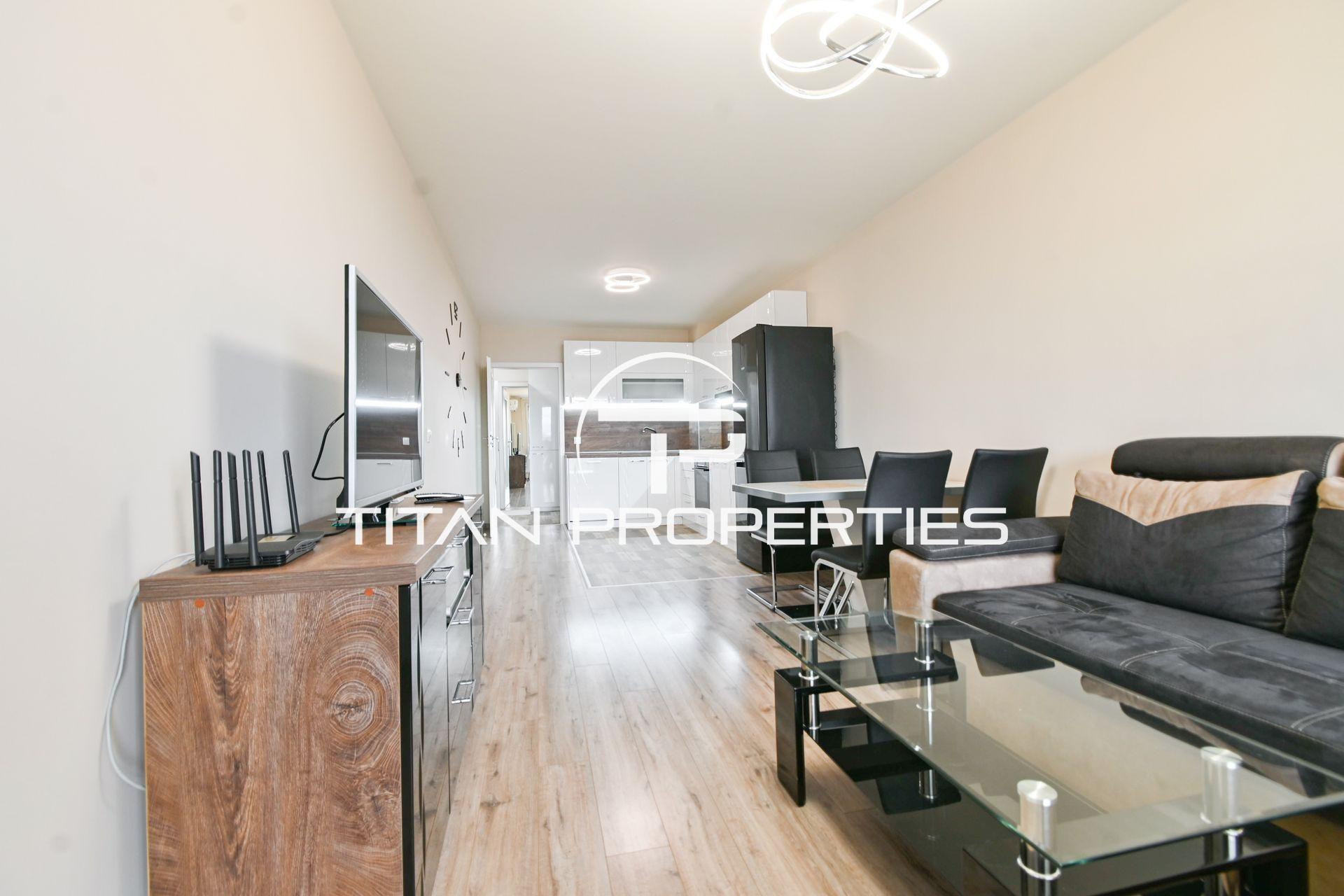 Титан Пропъртис - офис Хиподрума с радост предлага на Вашето внимание тристаен апартамент под наем в кв. Манастирски ливади, София. С обща площ от 108 кв.м. и разположение на 5-и етаж в нова 8-етажна сграда от 2022 г., имотът съчетава изискан комфорт и съвременен дизайн.