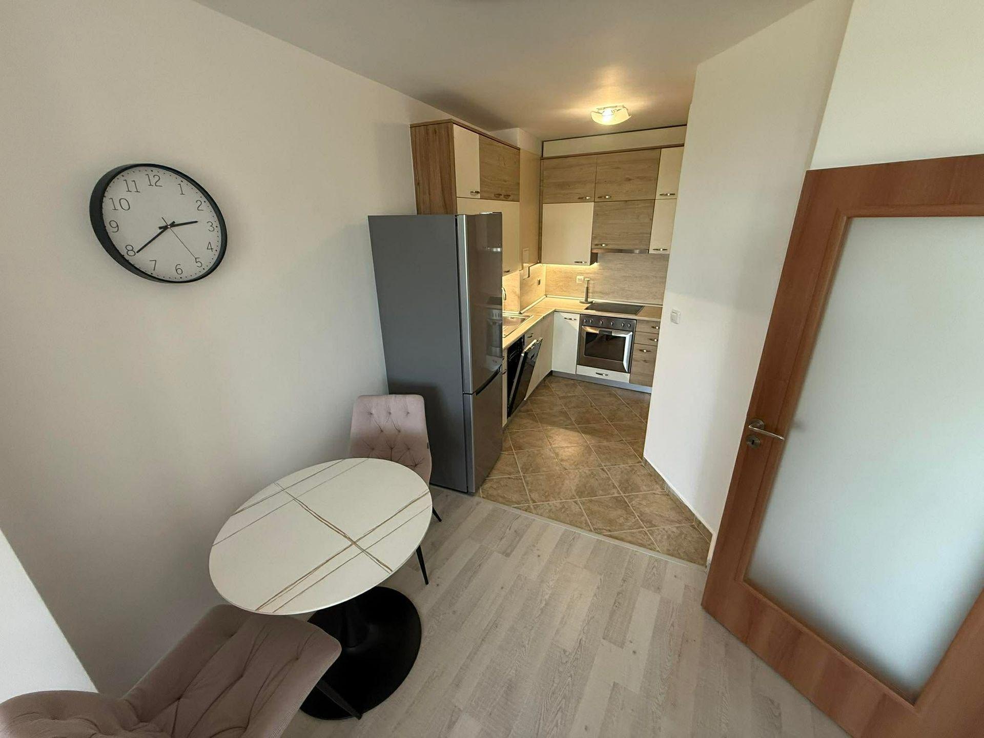 Апартаментът се предлага напълно обзаведен и оборудван. Отоплява се на ток и разполага с климатик и интернет окабеляване.
