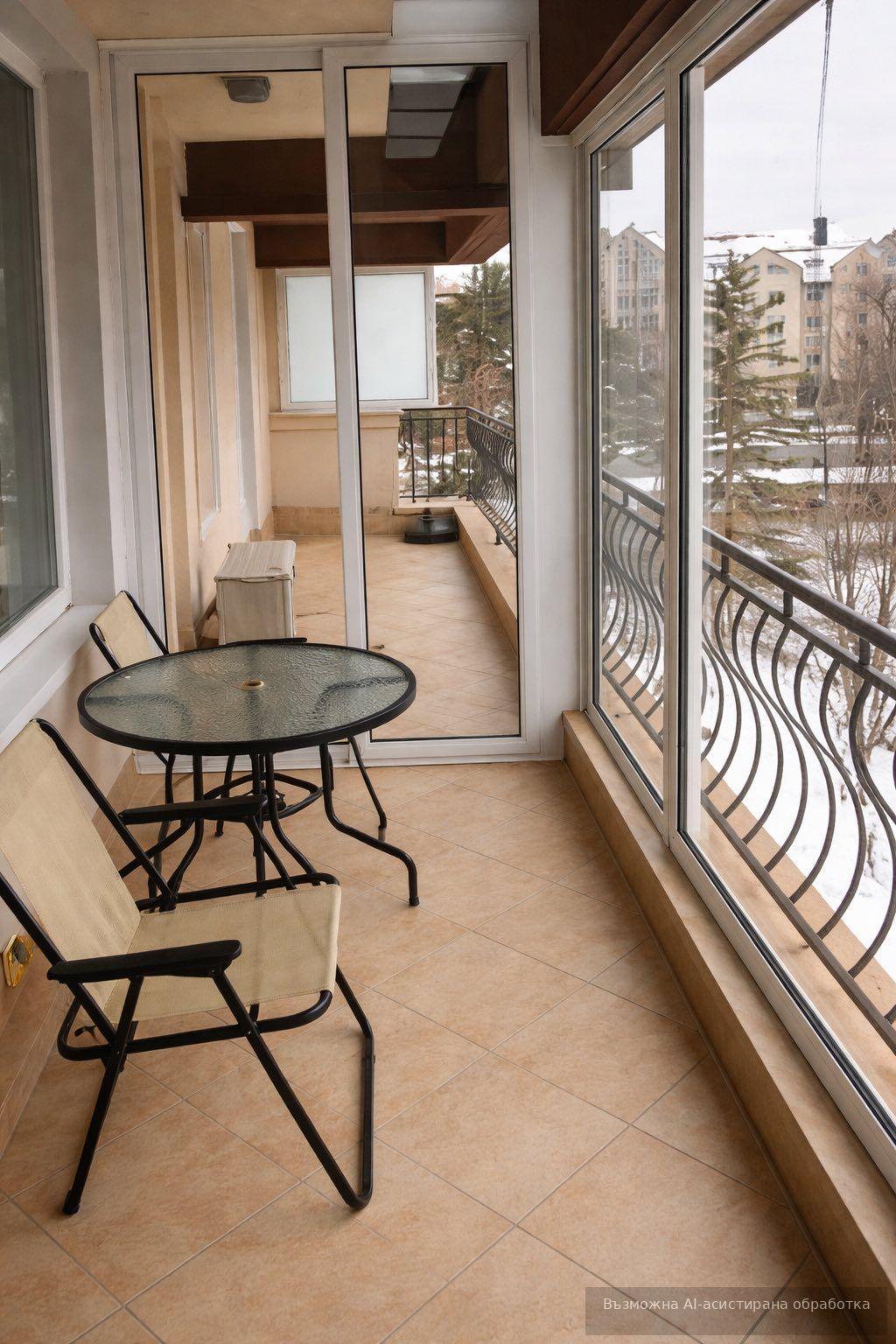 Апартаментът е напълно обзаведен и готов за нанасяне. Отоплява се на ток, посредством климатик.