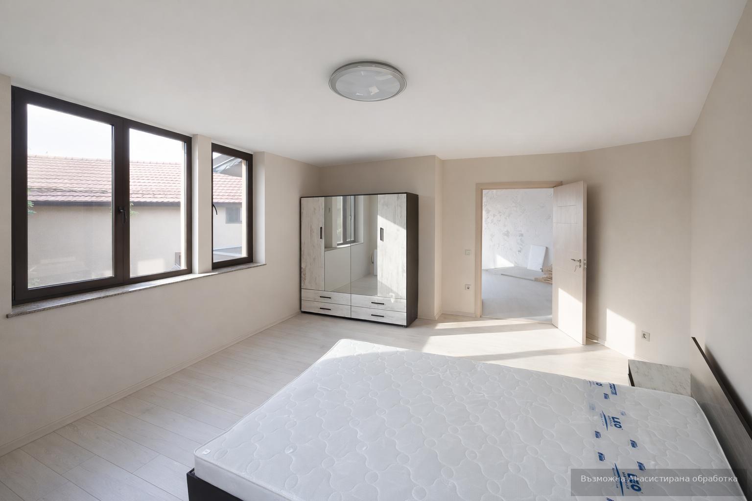 Жилището се предлага напълно обзаведено и оборудвано с всичко необходимо за едно домакинство. Към него има собствен двор и осигурени паркоместа пред къщата.