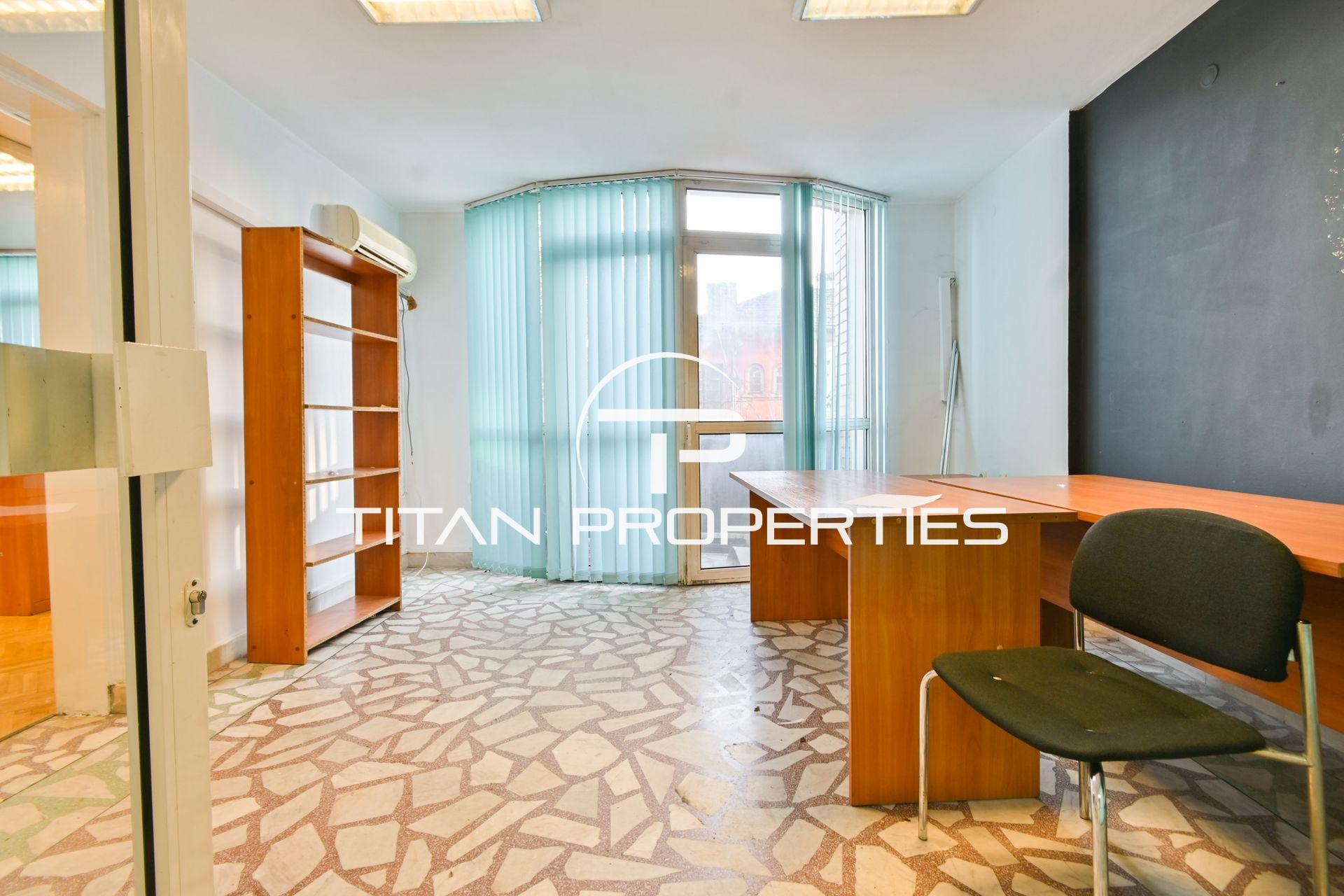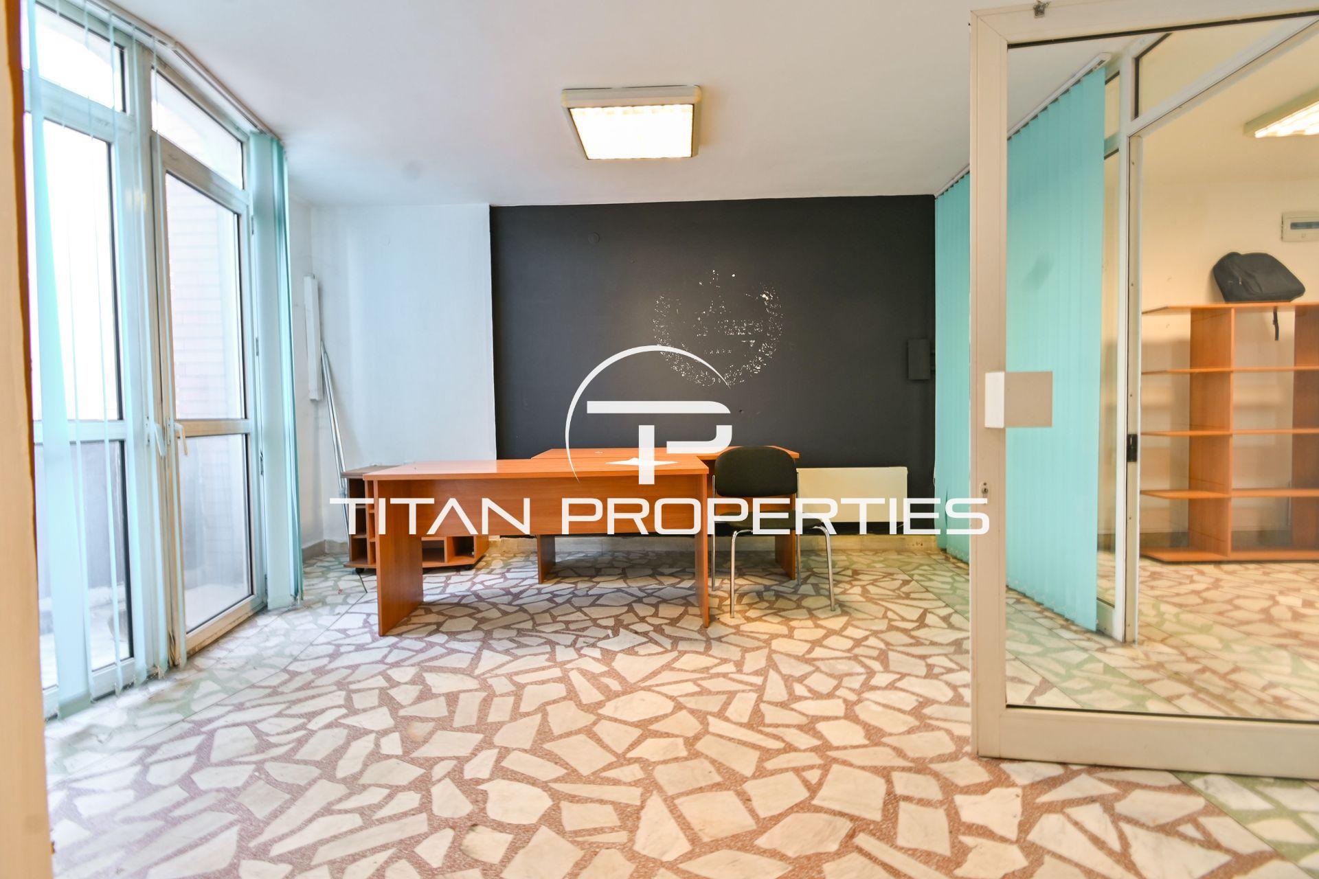 Титан Пропъртис - офис Младост с радост предлага на Вашето внимание офис под наем в жк. Банишора, София. Помещението с площ 103 кв.м. се намира на 2-рия етаж в нова пететажна сграда. Източно изложение. Разпределението включва антре, четири самостоятелни помещения, тоалетна, кухненска част и тераса, които позволяват гъвкава организация на работното пространство. Офисът се отдава необзаведен с отопление на ток.