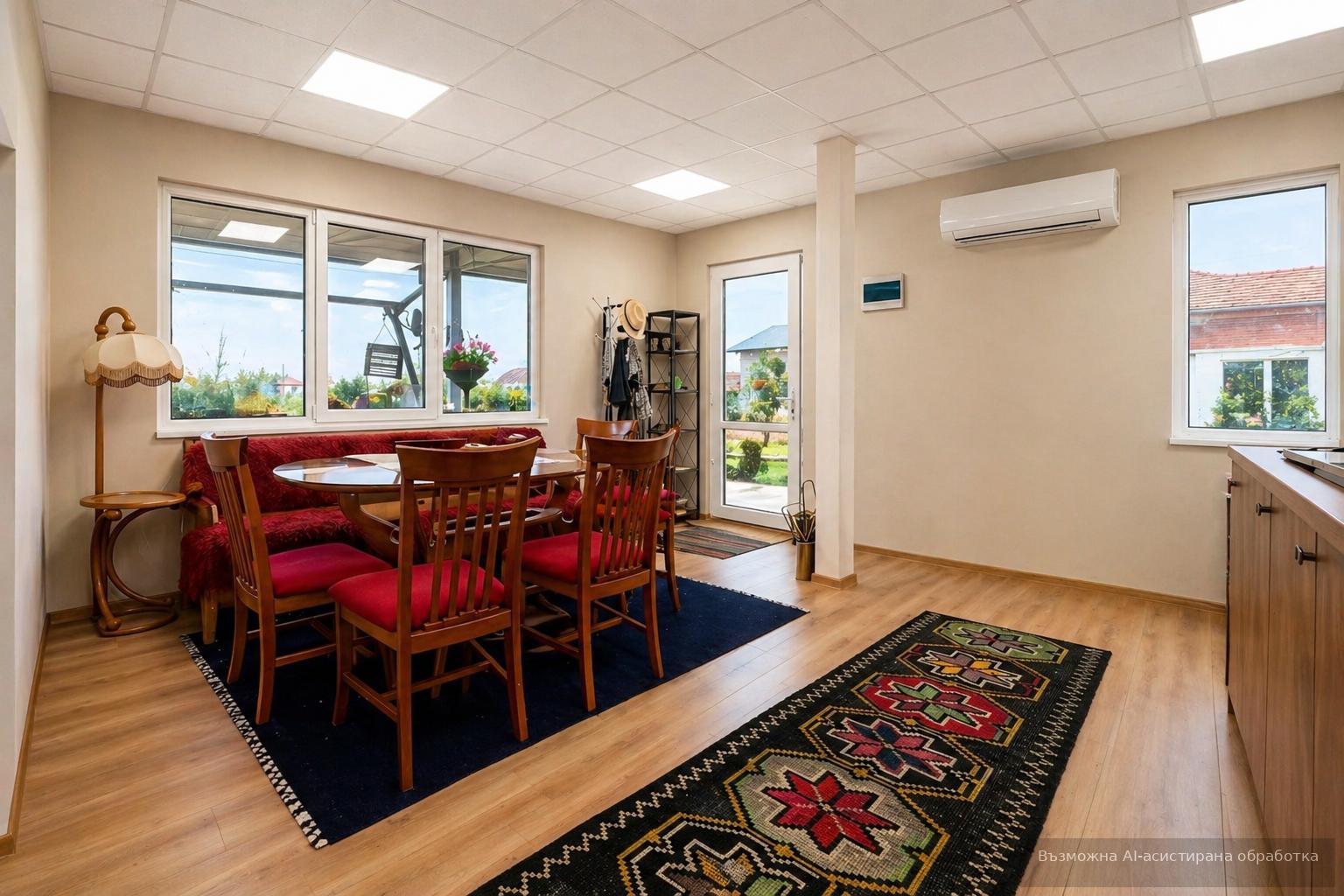 Къщата е напълно обзаведена и готова за живеене. Разполага с права и обратна вода, сондаж и оптичен интернет.
