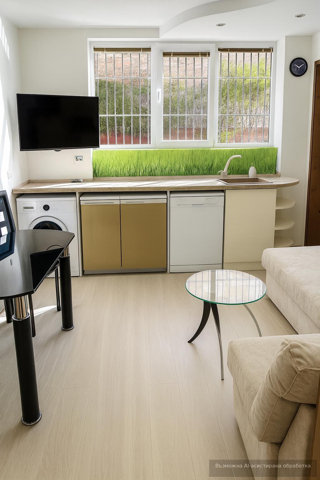 Жилището се предлага напълно обзаведено и оборудвано с всичко необходимо за едно домакинство до най-малкият детайл.