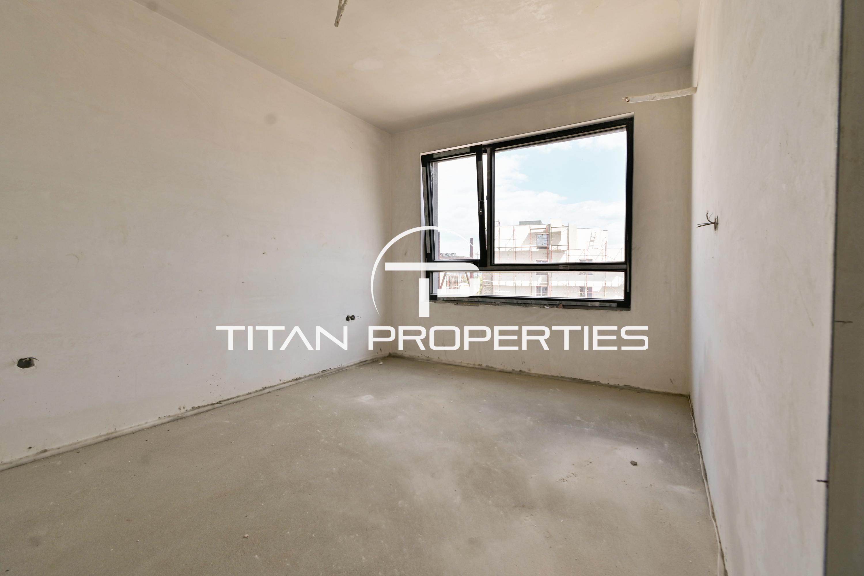 Титан Пропъртис офис - Черни връх с радост предлага на Вашето внимание тристаен апартамент за продажба в кв. Малинова долина, София. Жилището със застроена площ от 82 кв.м е разположено на 3-ти етаж в нова сграда на етап Акт 15, която ще бъде въведена в експлоатация края на 2026 г. Източно/южно изложение гарантира естествена светлина през целия ден. Разпределението включва входно антре, хол с кухненски бокс, две спални, две санитарни възела, тераса и мазе. Апартаментът е завършен "до ключ" и предлага отопление на електричество.