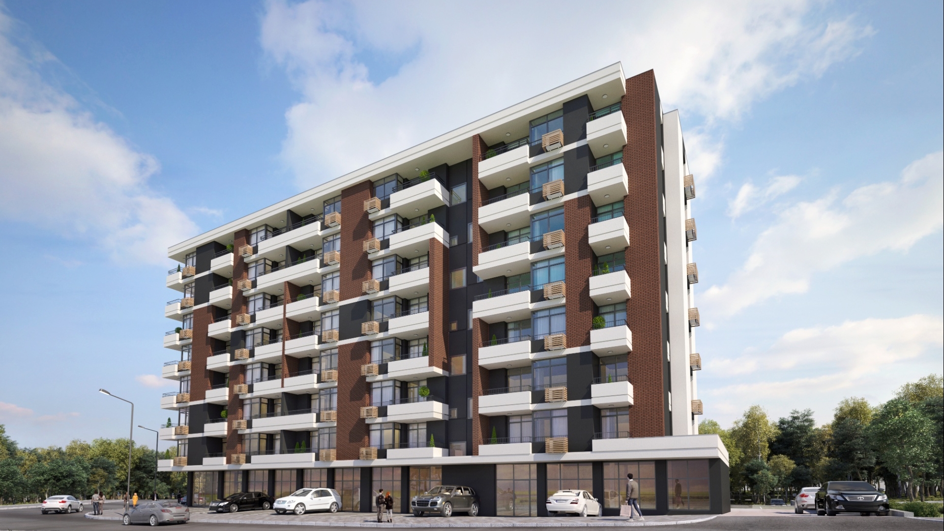 Намира се в новострояща се сградата с прецизно проектирана и съвременна градска архитектура, постигната чрез разделянето на фасадата на обеми, които потъват и изпъкват. Тези обеми са обработени с различни финишни материали, които отговарят на всички изисквания за висок клас сгради.