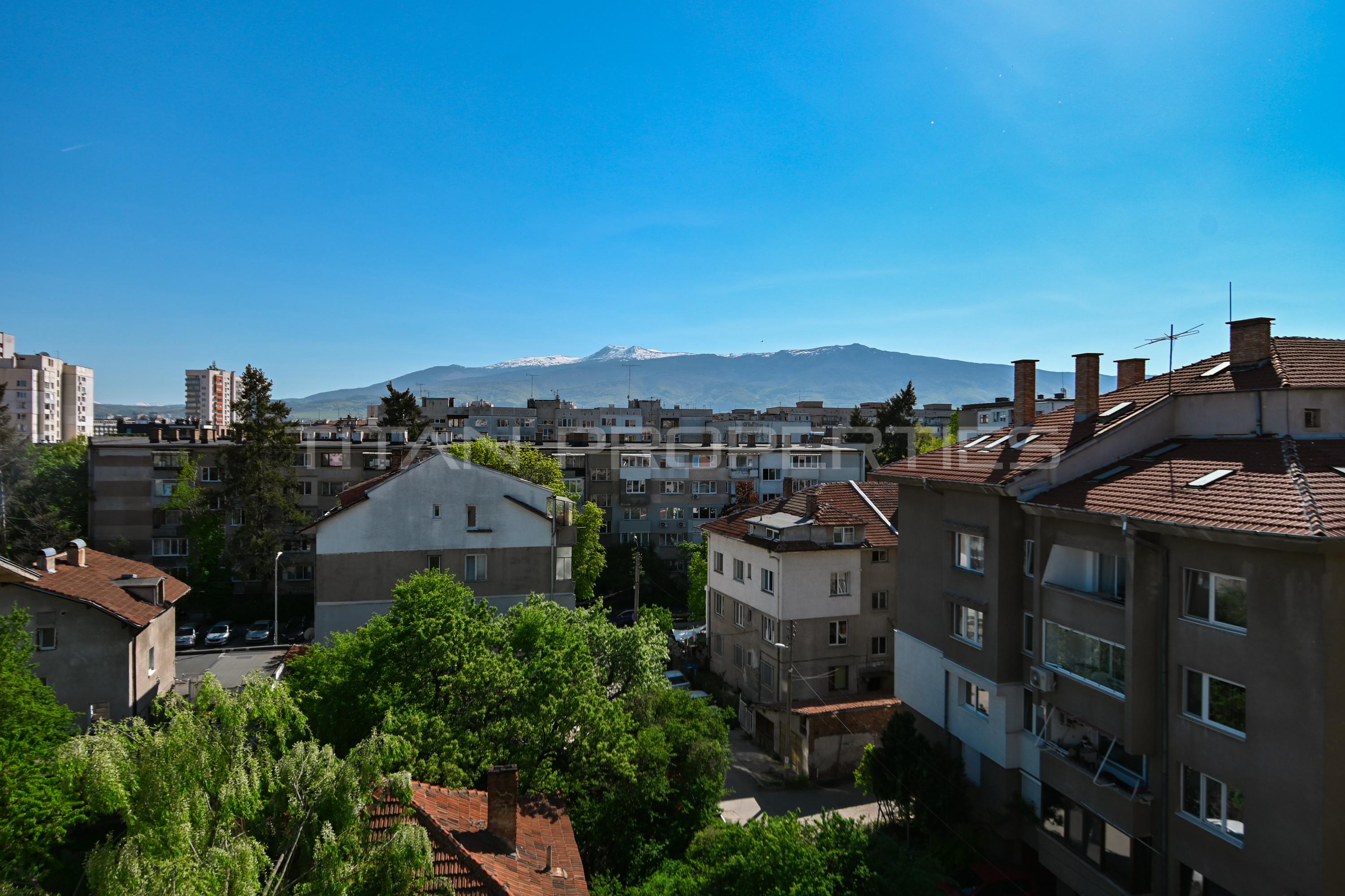 Титан Пропъртис представя на Вашето внимание просторен, слънчев и топъл мезонет с повече от прекрасна локация, а именно ж.к. Гео Милев. В близост са разположени множество търговски обекти, един от които е Скай Сити мол, спирки на градски транспорт, детска ясла, ДГ 168 Слънчогледи, 93 СУ Ал. Теодоров-Балан, медицински заведения, Парк Гео Милев е едно от най-спокойните и чисти места за раходка и игри, което е на 250 м. пешеходно разстояния, както и стадион Академик.