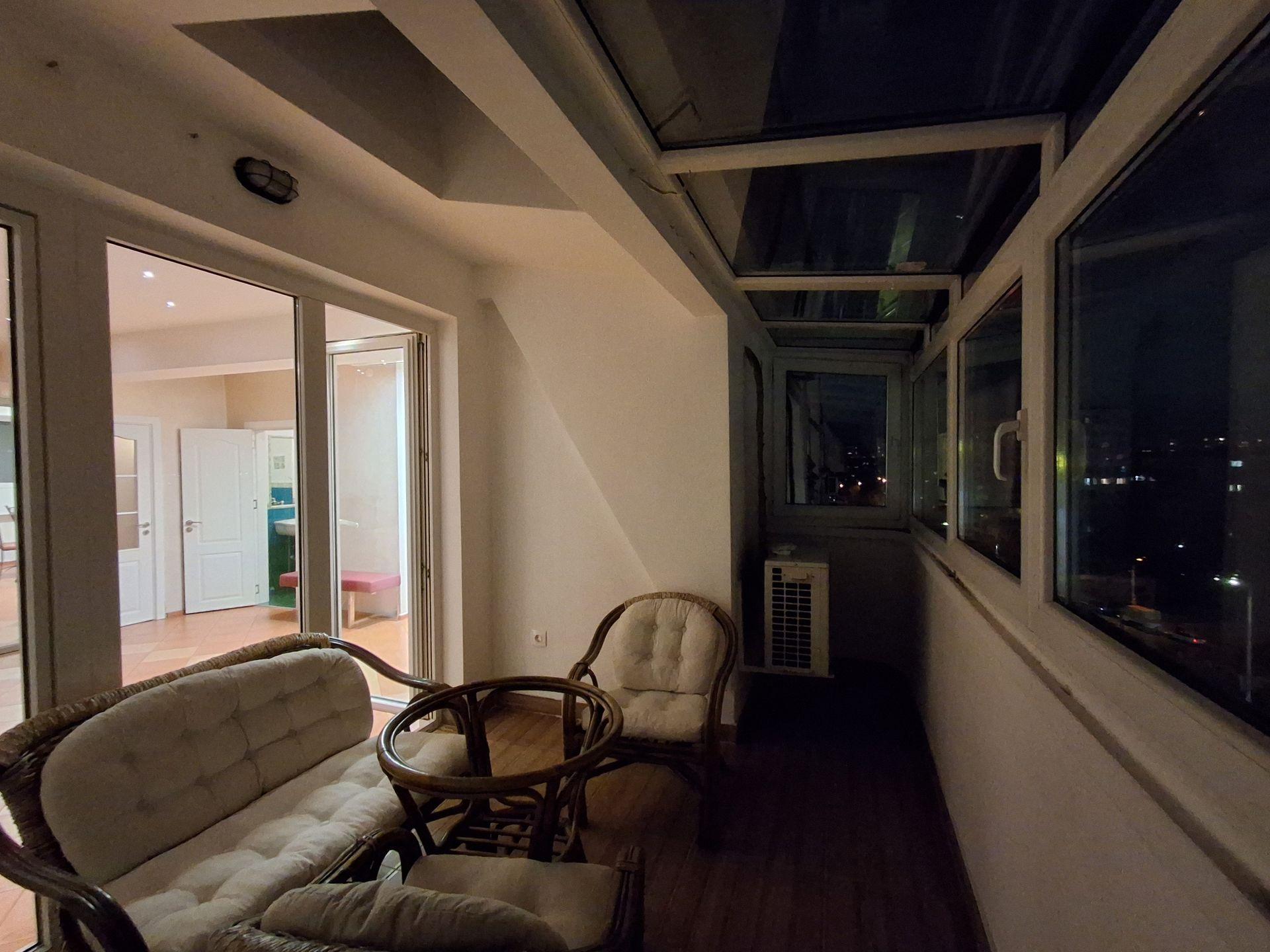 Титан Пропъртис офиа - Черни връх с радост предлага на Вашето внимание тристаен апартамент за продажба в кв. Стрелбище. Жилището с площ 96 кв.м се намира на 9-ти етаж в 10-етажна нова сграда. Изложение север/юг осигурява приятна светлина и панорамни гледки. Разпределението включва кухня с кът за трапезария, разчупен хол с преход към допълнително помещение, което по схема може да бъде адаптирано в две стаи, и просторна тераса на юг с изглед към Бул.България от страна на хола. Асансьорът предлага лесен достъп, а двата входа – северен и южен – допълват удобството. Жилището е обзаведено и отоплява се на електричество. Към имота има и мазе.