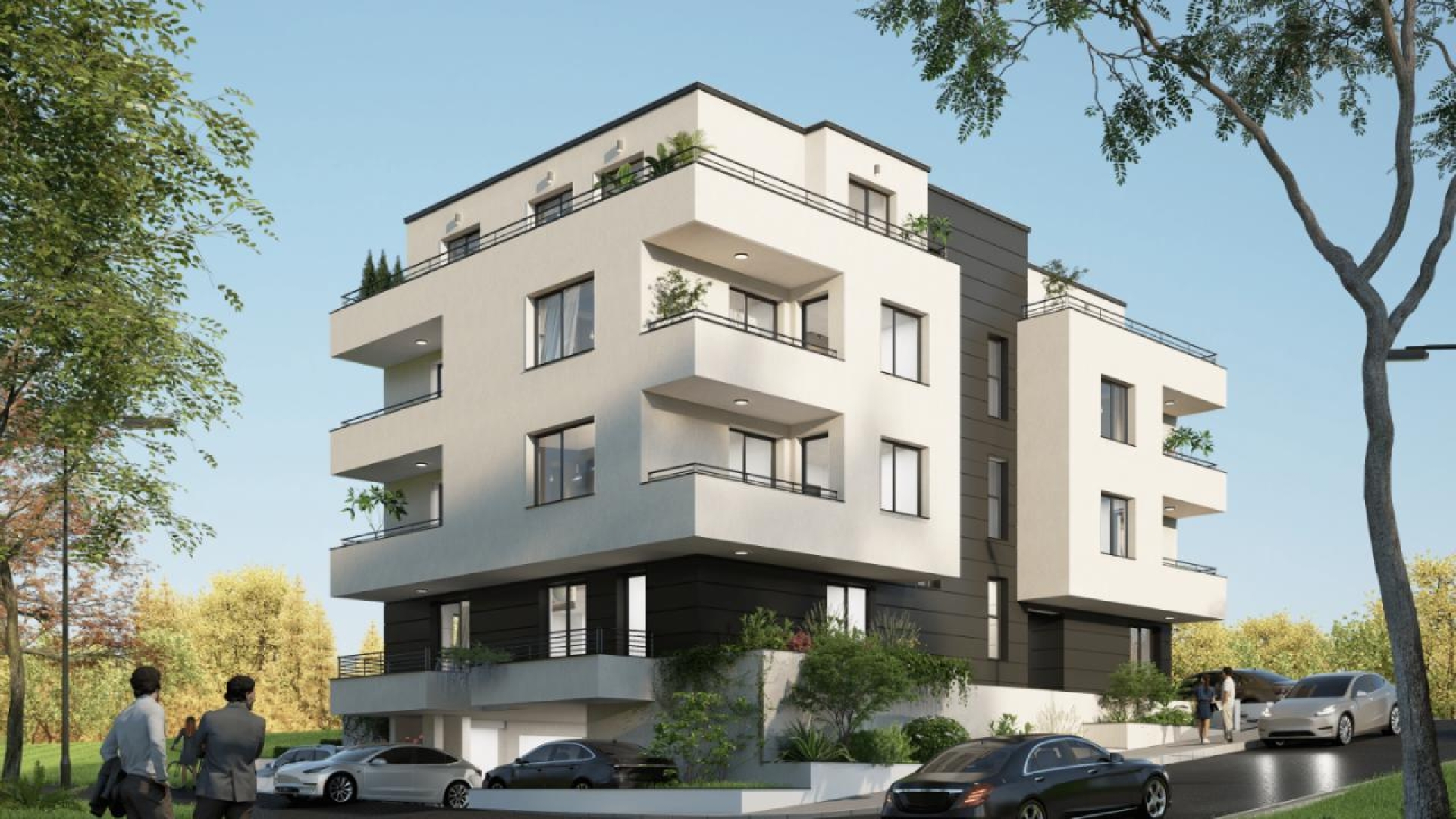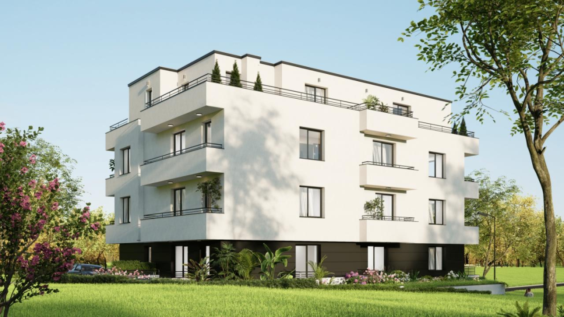 • Тераси: гранитогрес, XPS + хидроизолация, алуминиев парапет