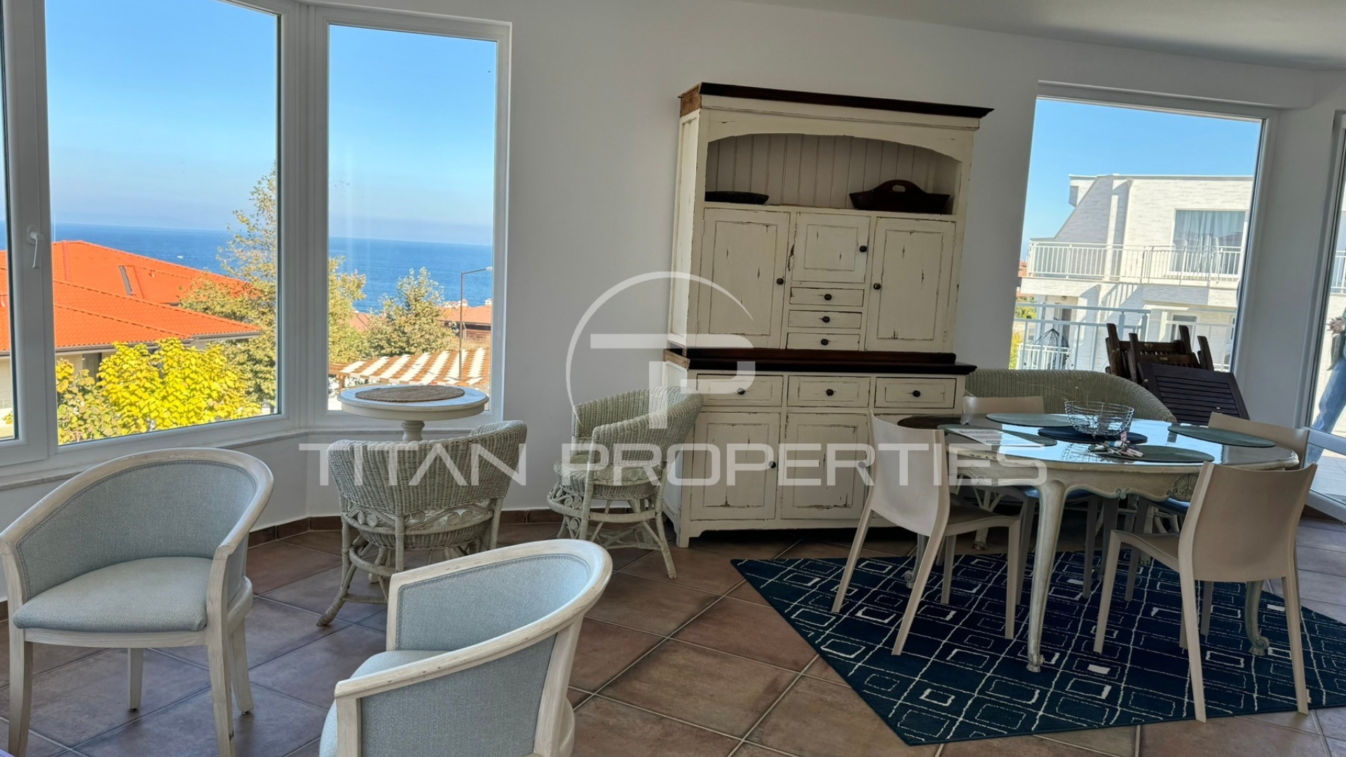 Агенция за недвижими имоти ”Титан Пропъртис” предлага на Вашето внимание за продажба, Тристаен обзаведен апартамент с Акт 16 на първа линия до плажа в гр. Созопол.