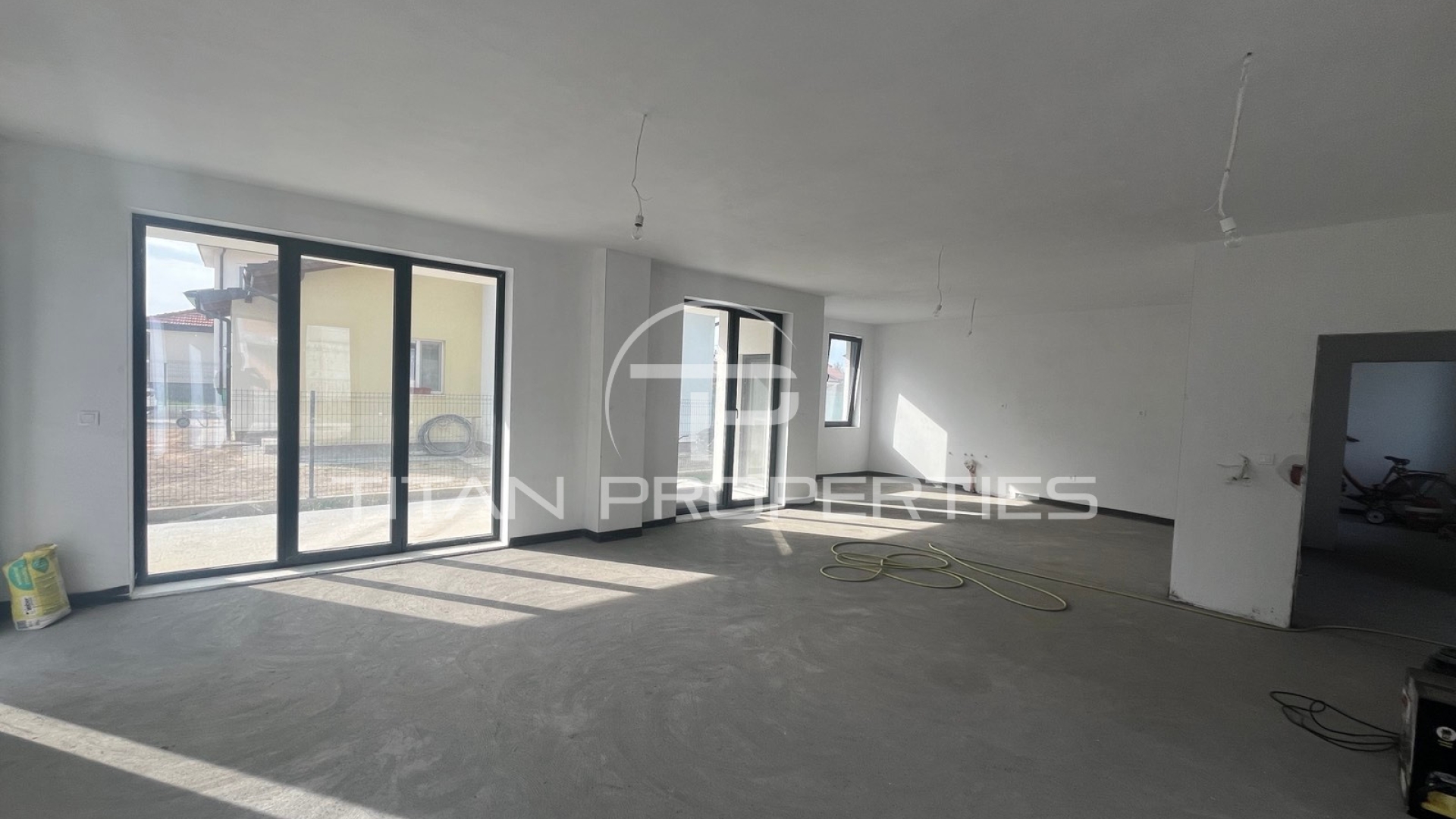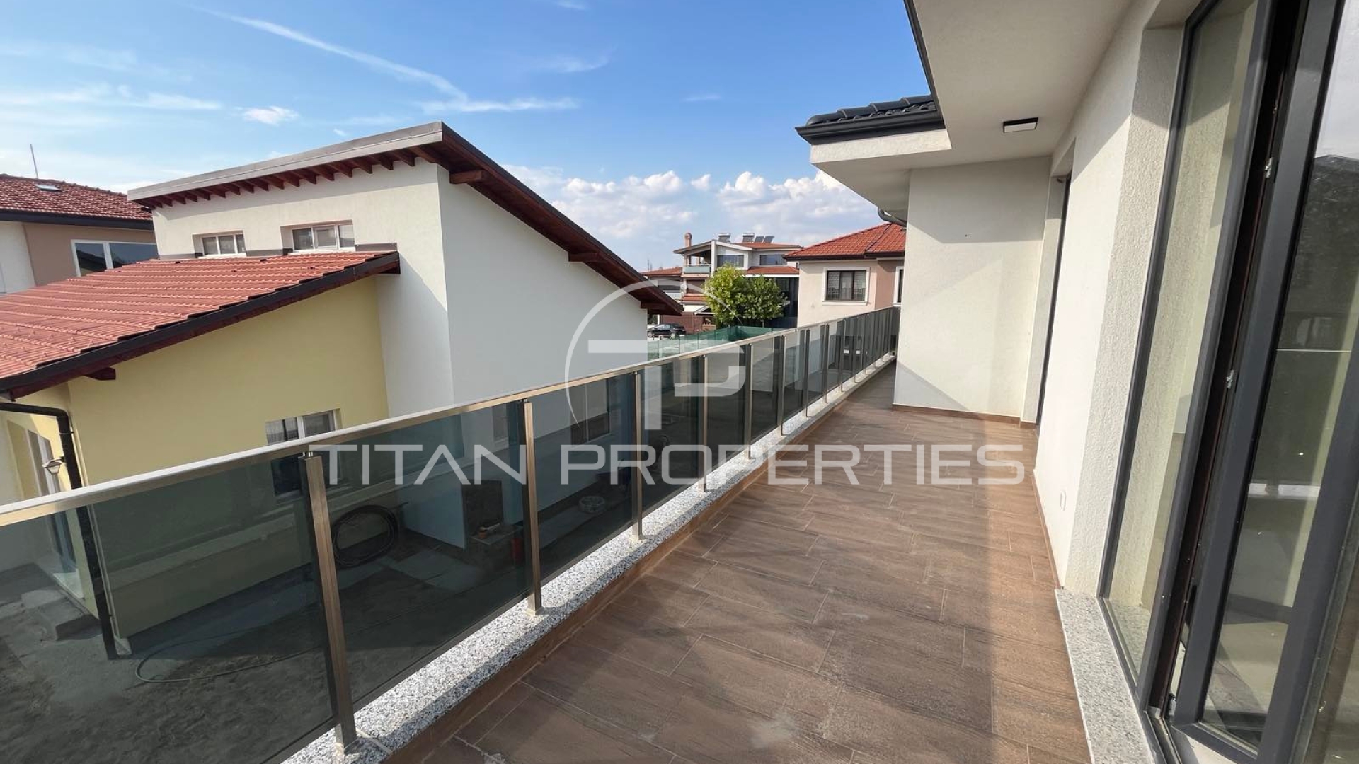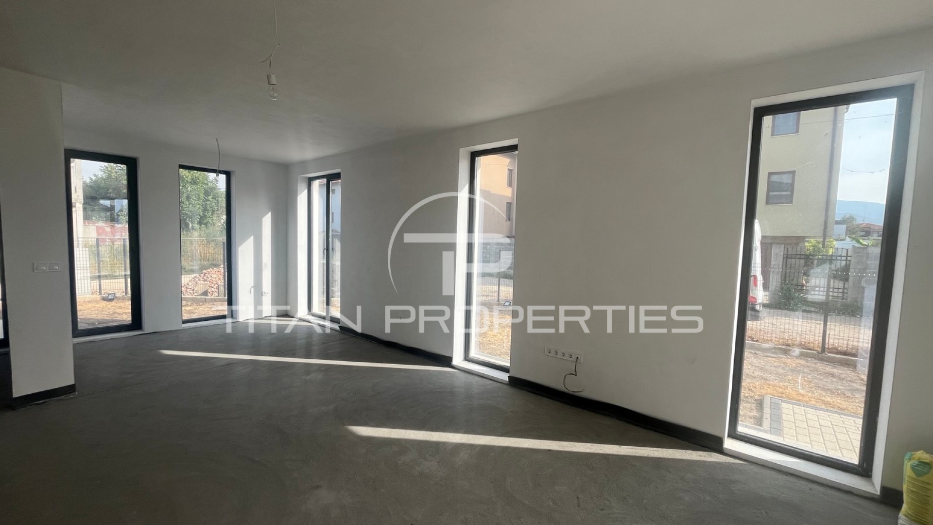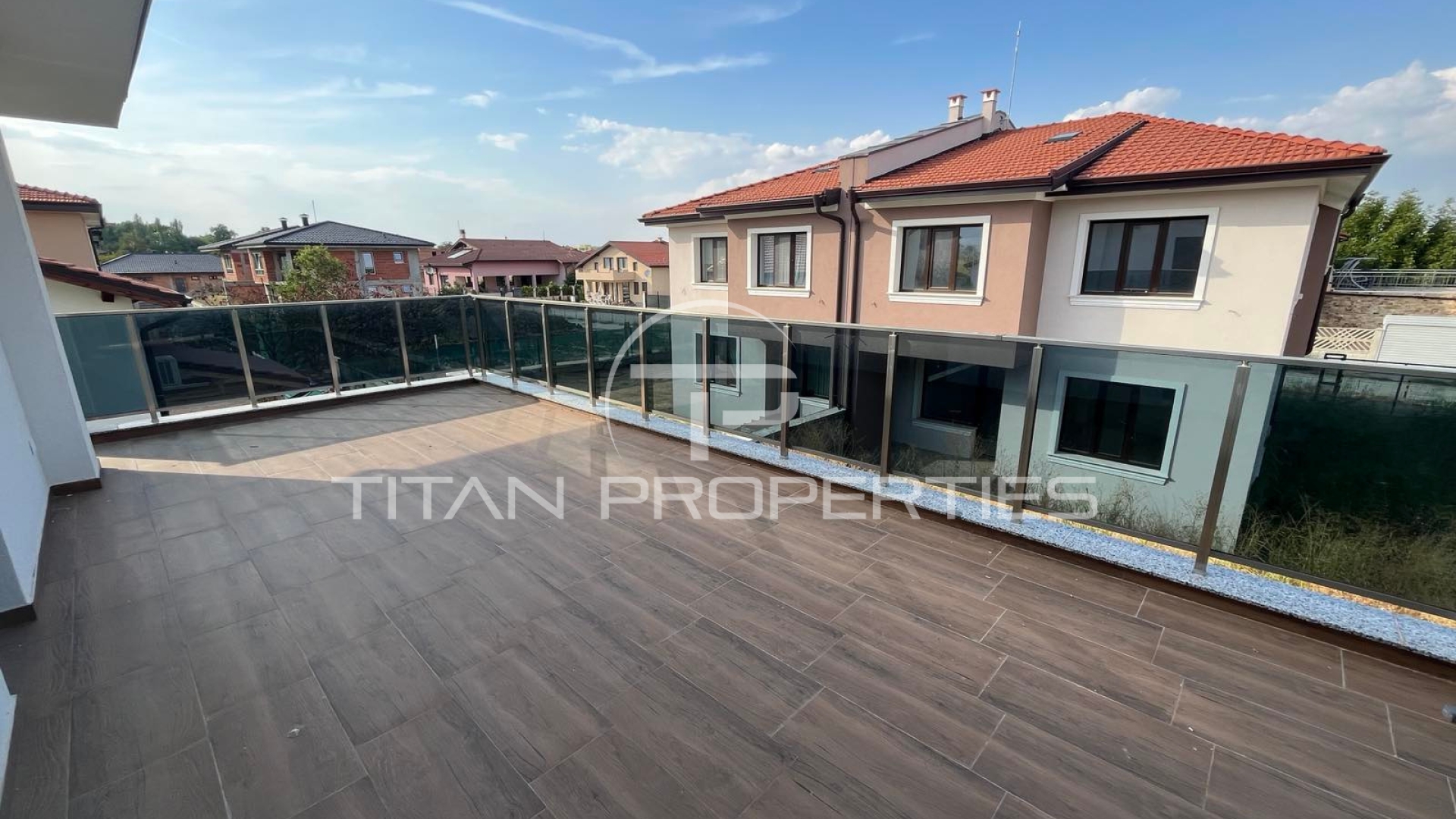 Къщата е ситуирана на два етажа и разполага с обща площ 290 кв.м., разгърната по следния практичен начин: 1-ви етаж: коридор,просторна дневна с кухнески бокс, кабинет,баня с тоалетна,килер; 2-ри етаж: спалня с баня и тоалетна,две спални,баня с тоалетна,голяма тераса. Имтът е самостоятелен, на шпакловка и замазка се предлага , изградено подово отопление, паркоместа в двора.