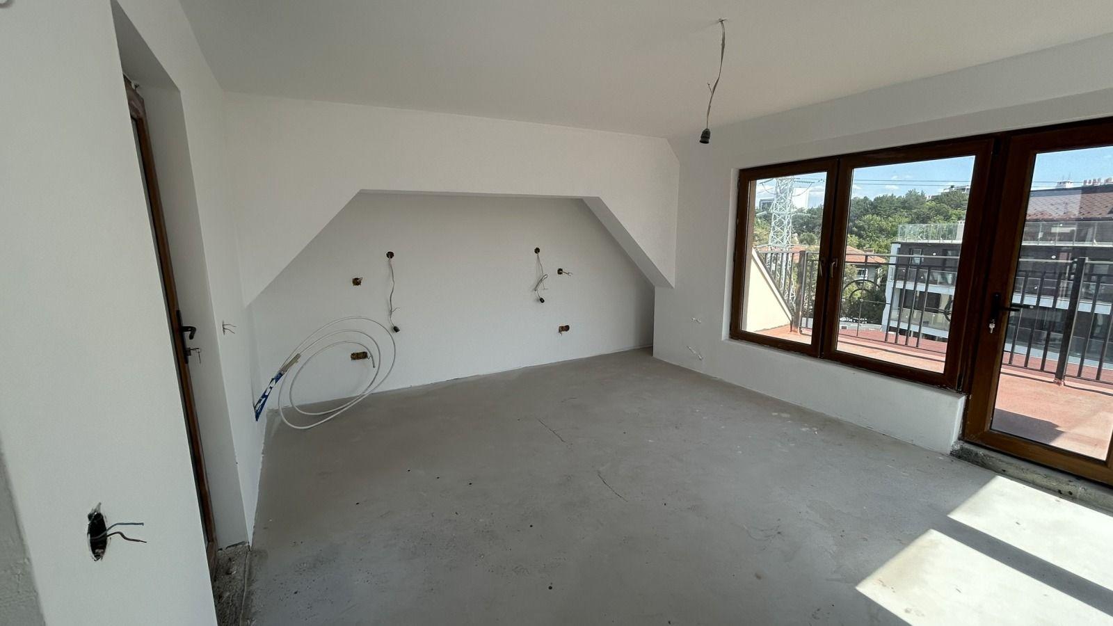 Титан Пропъртис офис - Черни връх с радост предлага на Вашето внимание двустаен апартамент за продажба в кв. Витоша. Жилището е със застроена площ от 89,74 кв.м. и се намира на 6-ти етаж в нова сграда на етап Акт 15, която ще бъде въведена в експлоатация (Акт 16) 2027 г. С изложение изток, юг, север. Разпределението включва просторен хол, спалня, баня с тоалетна и две тераси. Апартаментът се предлага на шпакловка и замазка и отоплението е на електричество. Новото строителство гарантира модерна визия и качествени материали за дълготраен комфорт. Отличен избор за ценители на функционални и светли пространства в престижен район.