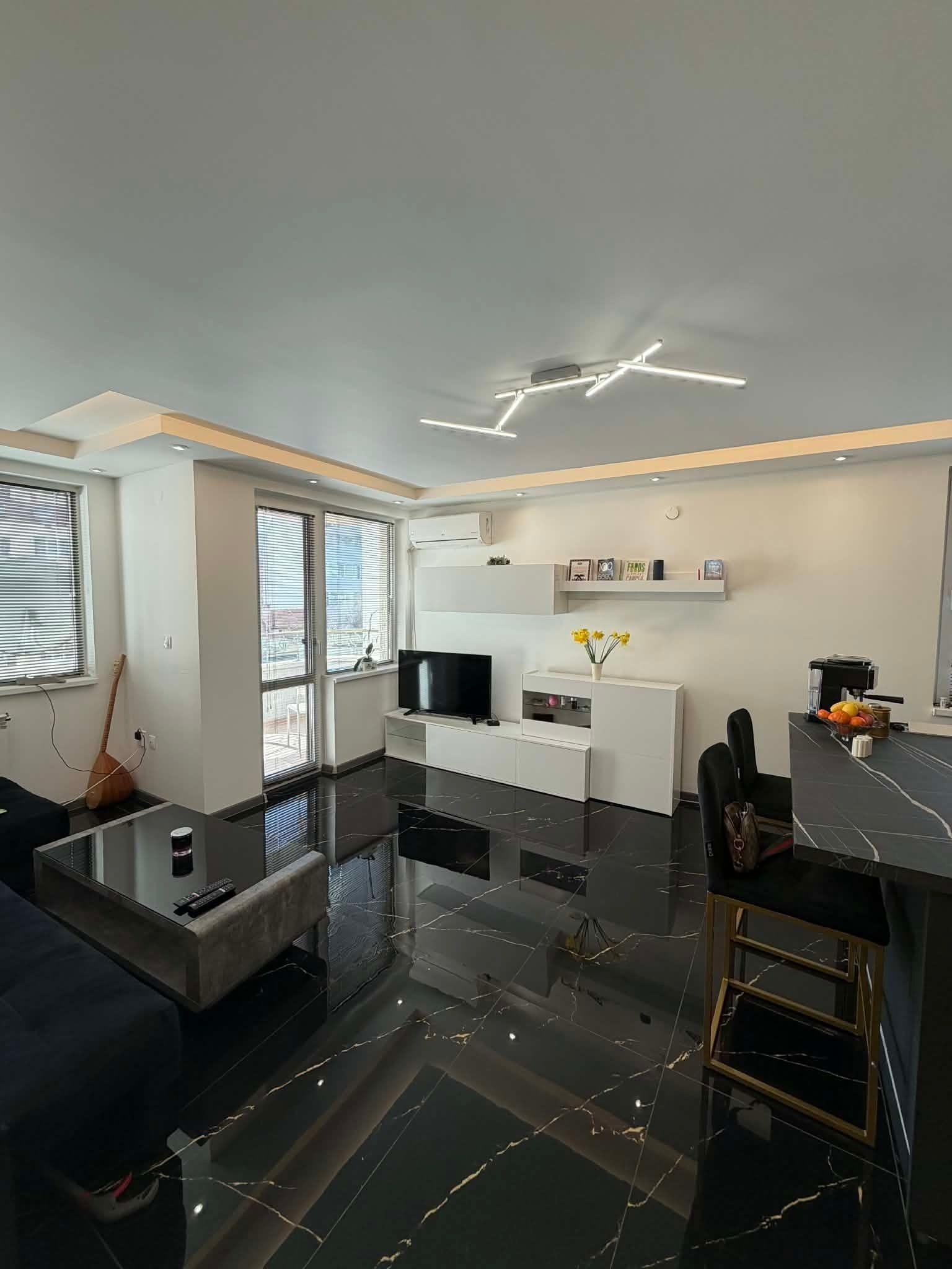 Апартаментът е напълно обзаведен и готов за нанасяне, отоплява се на ТЕЦ и разполага с два климатика. Освен това, на разположение е споделено паркомясто в двора на сградата, където можете да паркирате автомобила си.