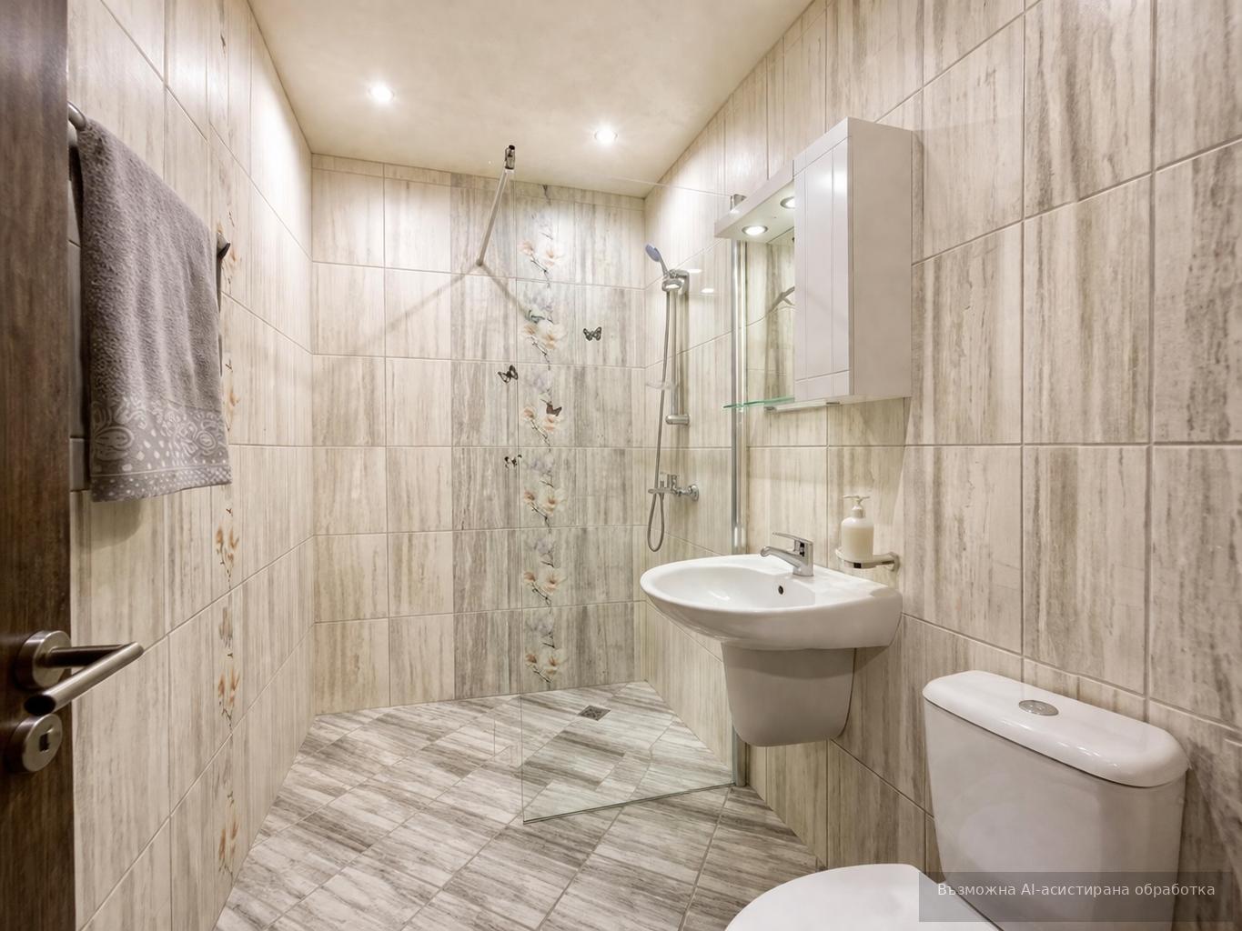 Имотът е ситуиран на 3-ти жилищен етаж и разполага с площ 66 кв.м разгърнати в следното разпределение: входно антре, хол с кухня, спалня, баня с тоалетна, тераса.