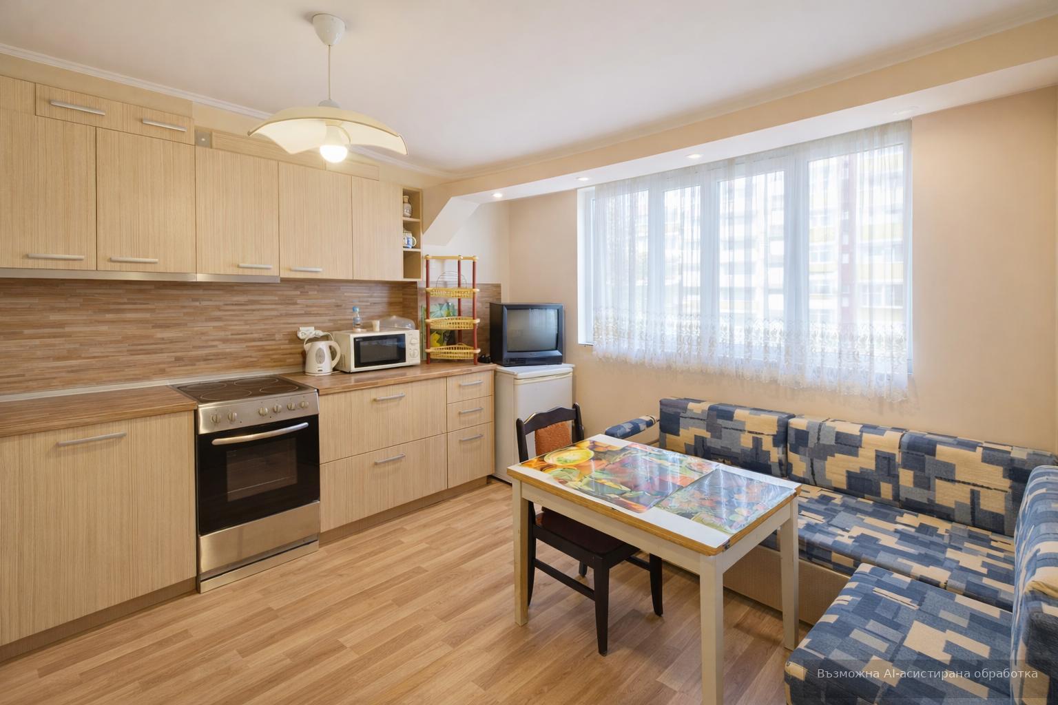 Жилището се предлага напълно обзаведено и оборудвано с всичко необходимо за едно домакинство.