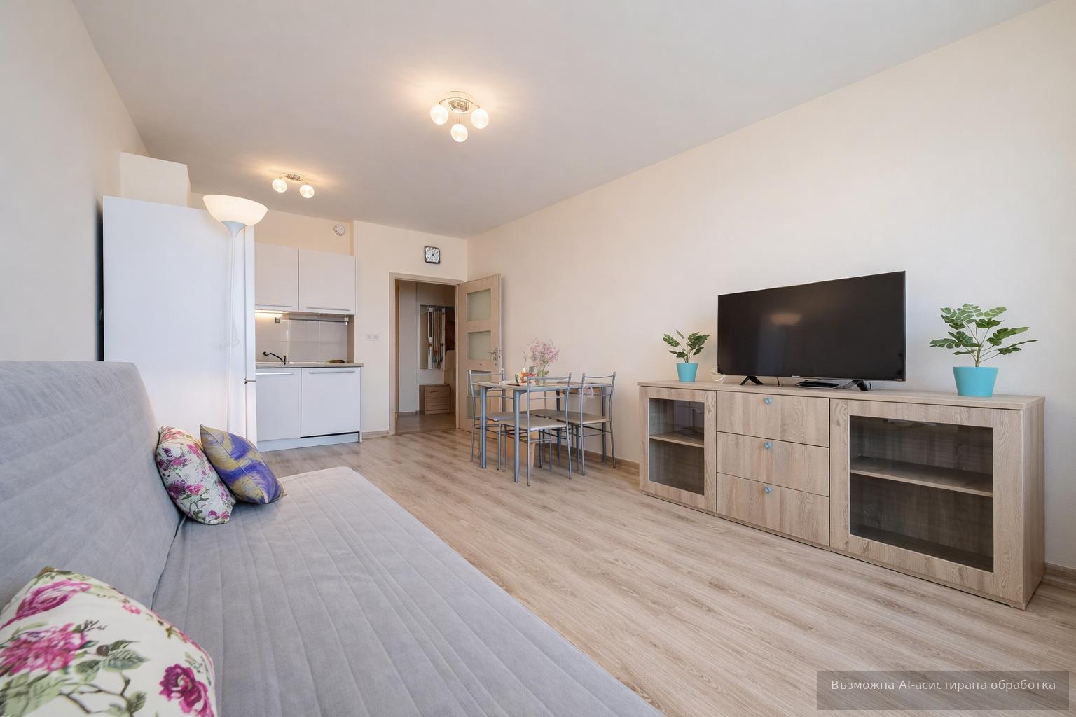 Апартамента е разположен в близост до спирки, магазини и хипермаркет, зони за отдих, заведения.