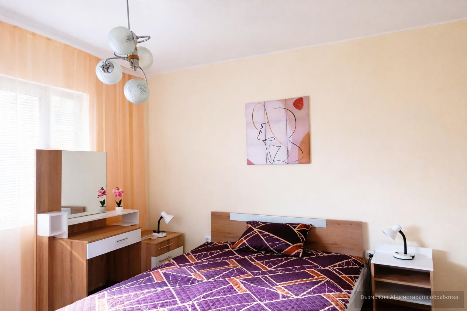 Жилището се предлага напълно обзаведено и оборудвано с всичко необходимо за едно домакинство. Свободно паркиране пред блока.