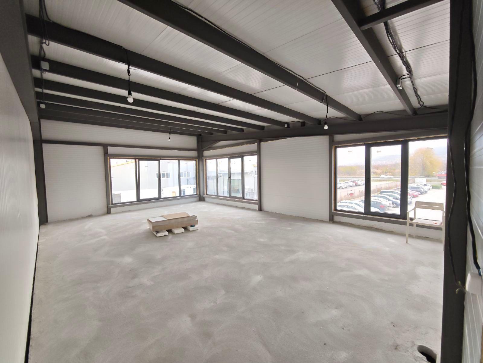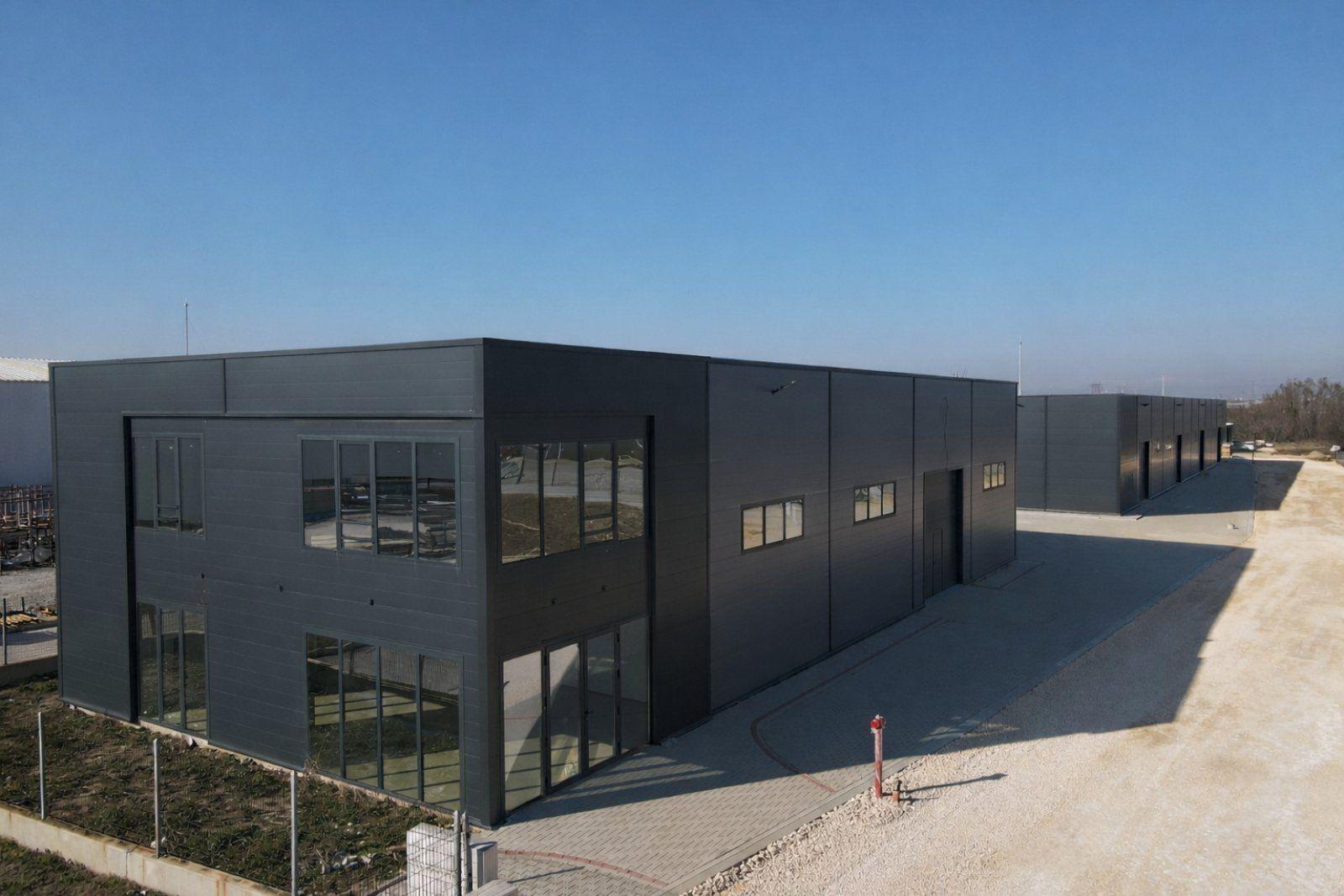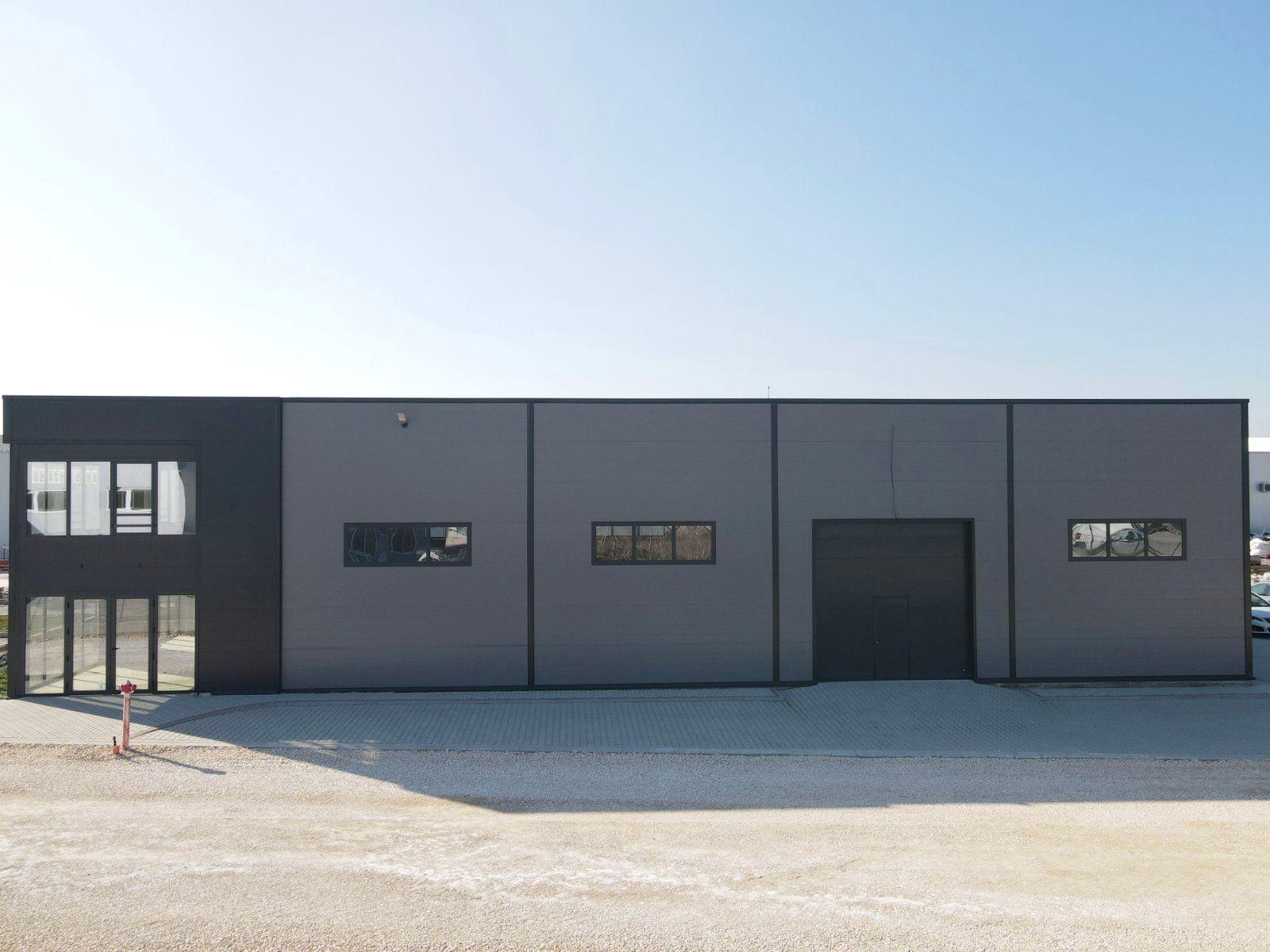 Сградата е с метална конструкция и изпълнение с 10 см термопанели, което осигурява добра изолация и стабилност на конструкцията. Подовата настилка е шлайфан бетон, подходящ за складова, логистична или производствена дейност.