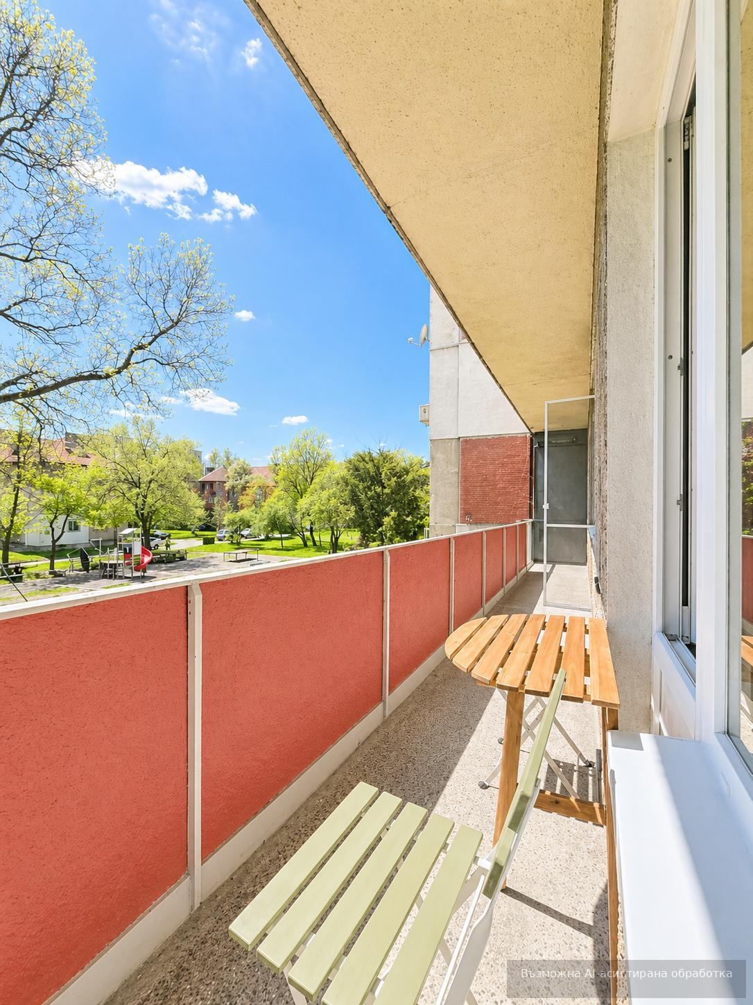 Сред допълнителните предимства е близостта до спирки. Месечният наем е 600 EUR.