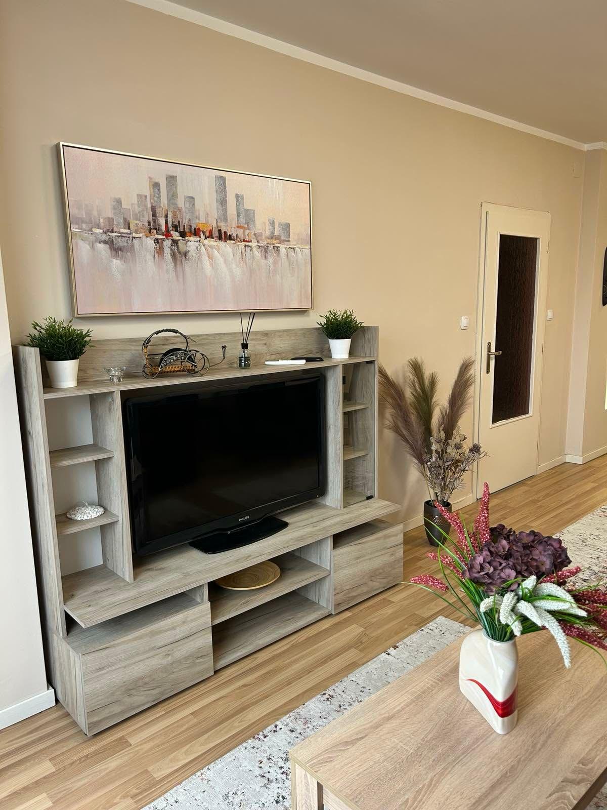 Обзаведен с качествени мебели и оборудване, апартаментът отоплява се на ТЕЦ и е разположен близо до спирки, което улеснява придвижването в града. Месечният наем е 700 EUR.