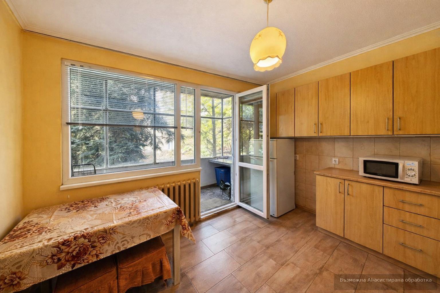 Жилището с площ 65 кв.м е разположено на първи етаж в шестетажна сграда. Източното изложение осигурява мека сутрешна светлина.