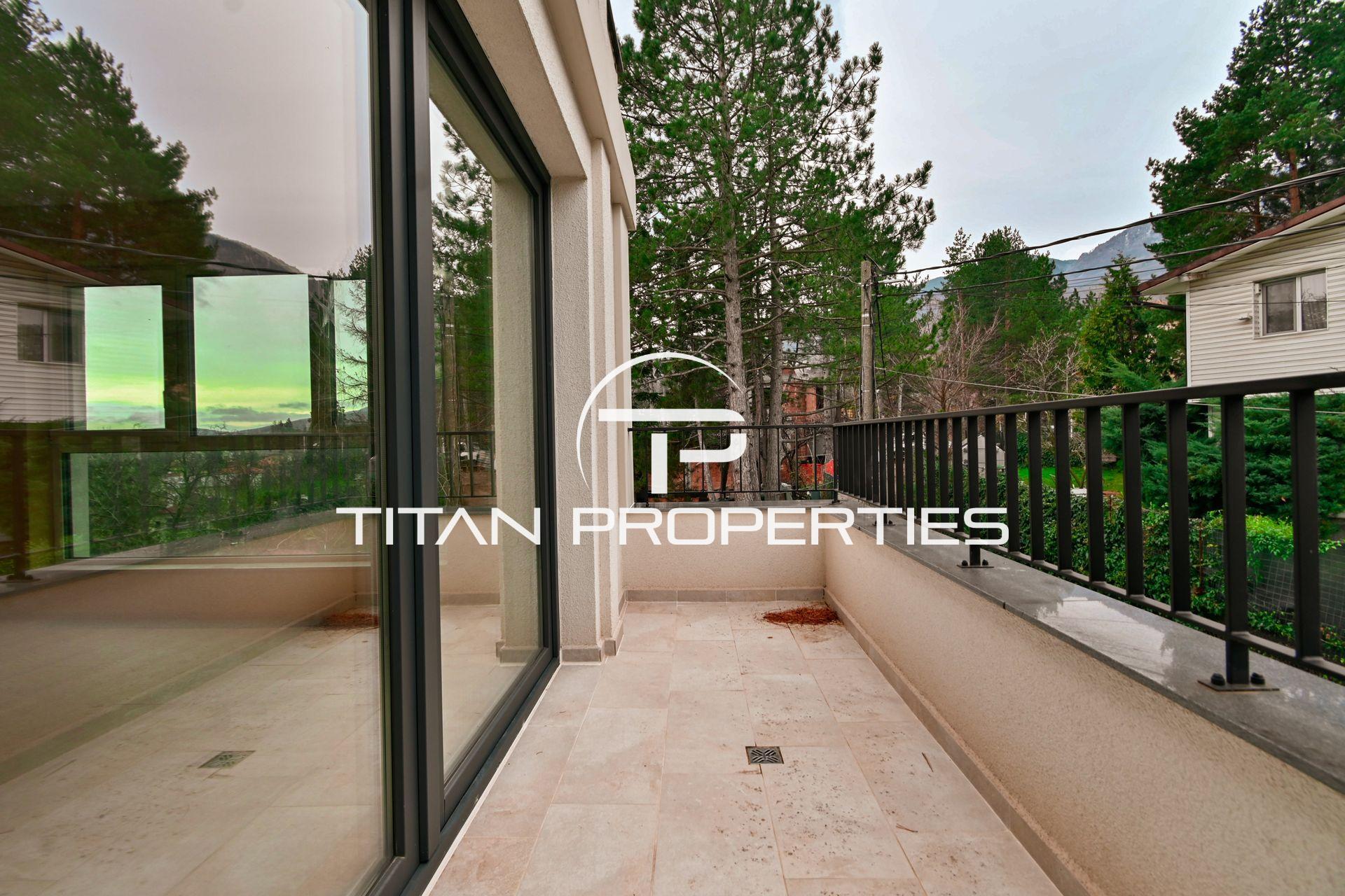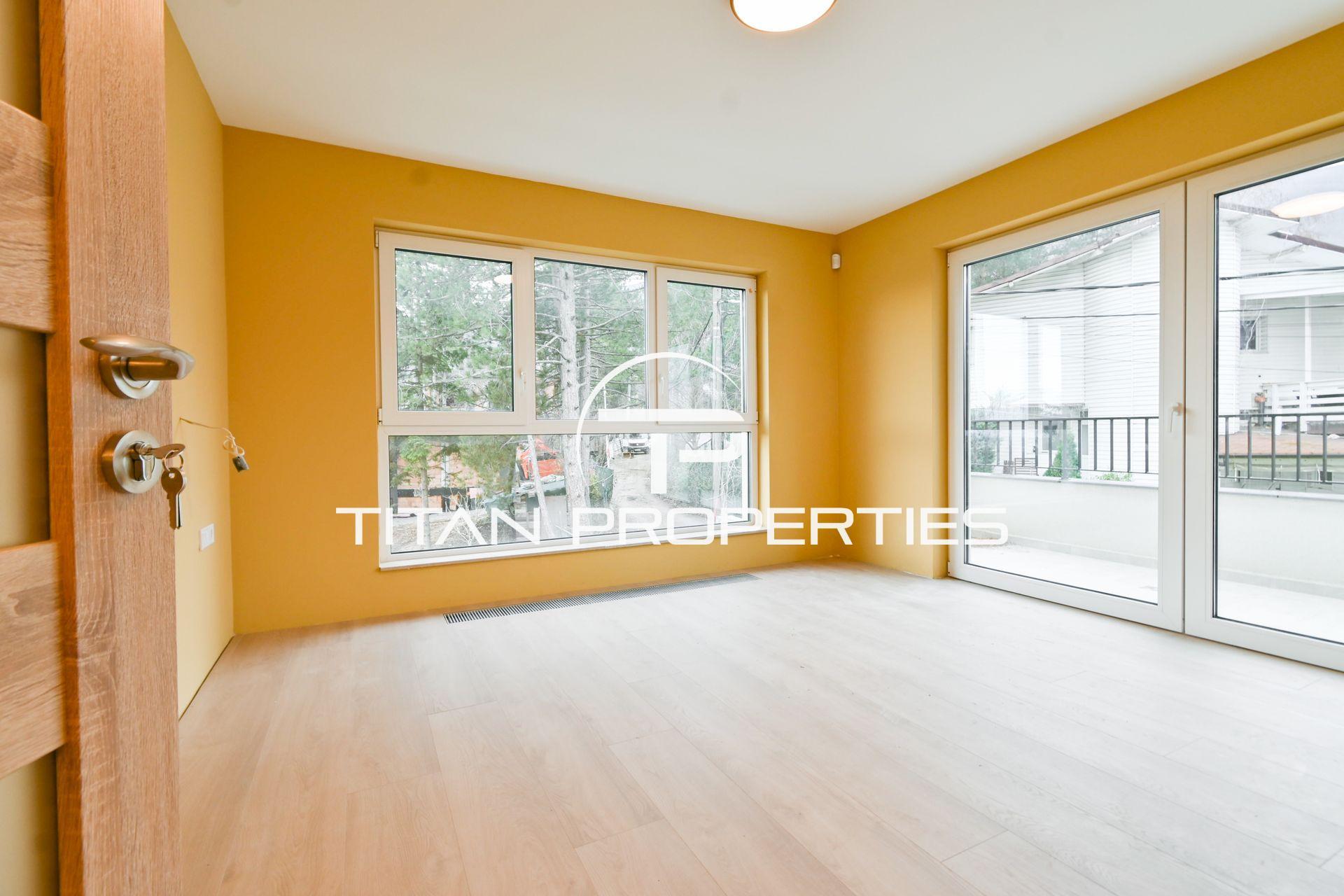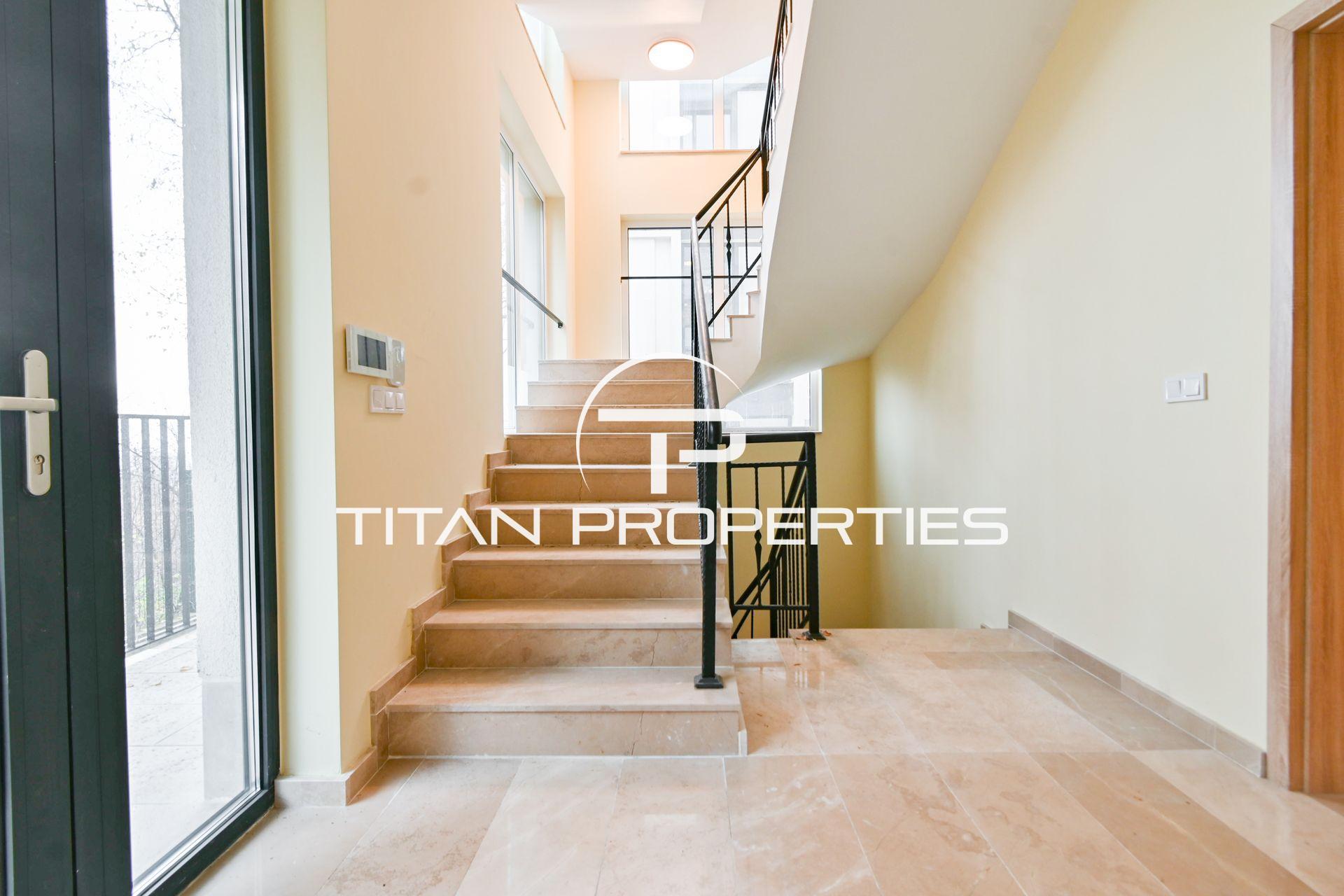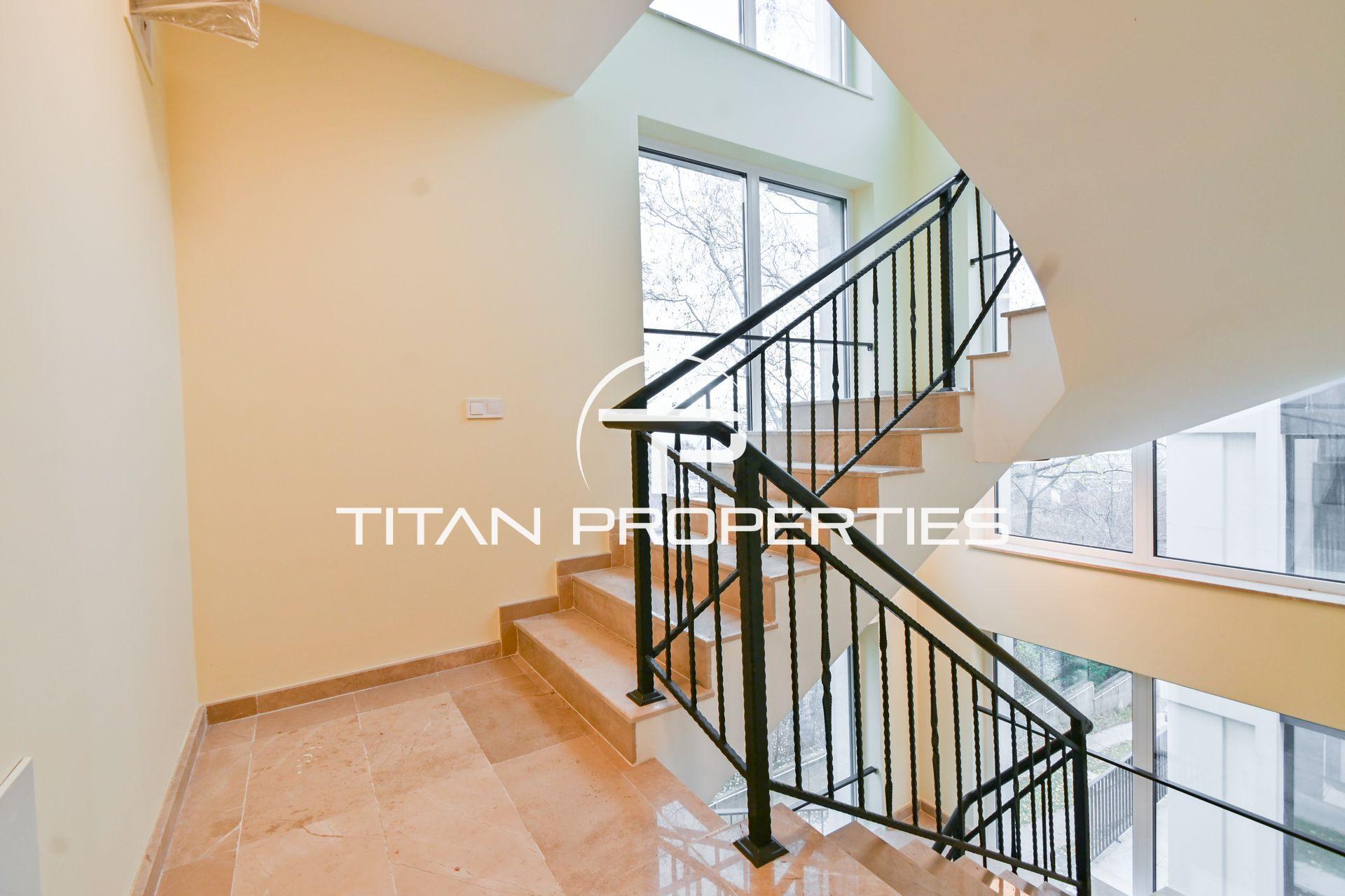Титан Пропъртис - офис Младост с радост предлага на Вашето внимание луксозна къща под наем в кв. Драгалевци, София с обща площ 400 кв.м. в нова къща. Разпределението включва сутерен: механа, винарна изба, котелно помещение със сензор против наводнение, перално помещение с улей от всички бани, склад с rack шкаф за интернет, СОТ и Smart home система. Партерното ниво включва хол с кухненски бокс и трапезария склад с топла връзка към гаража, веранда, двор и паркомясто. Вторият етаж разполага с три спални с отделни тераси, една със собствена баня и дрешник, както и допълнителна баня и тоалетна. На третия етаж е голяма стая/офис с П-образна тераса и баня с тоалетна. Отопление с термо помпа има опция и на газ. Разполага със системна Smart home за управление и следене на жилището. Къщата се предлага напълно обзаведено с чисто нови мебели и оборудвано с висок клас ел. уреди.