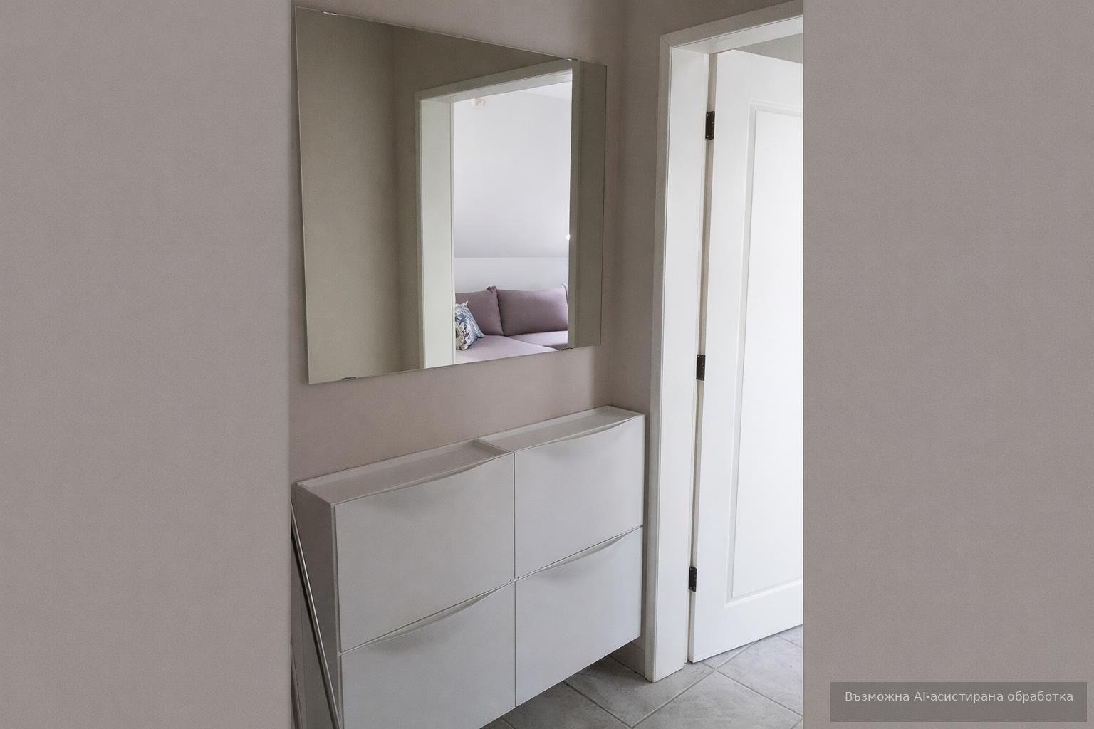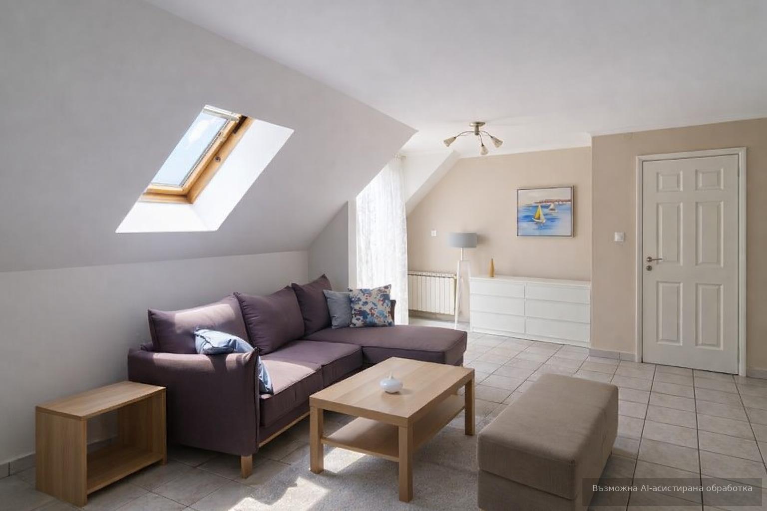 Дневното пространство включва антре, просторна всекидневна с кухня, две спални, баня с тоалетна и две тераси. Обзаведен и оборудван с ТЕЦ, апартаментът осигурява комфорт и топлина през целия сезон.