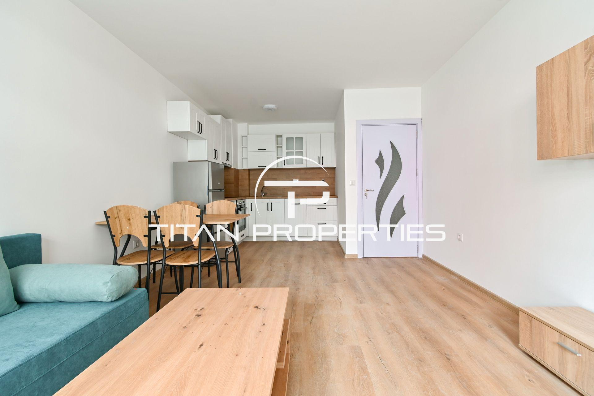 Титан Пропъртис офис - Черни връх с радост предлага на Вашето внимание двустаен апартамент за продажба в кв. Малинова долина. Жилището със застроена площ 54 кв.м. е разположено на 1-ви етаж в новострояща се пететажна сграда, която е с издаден Акт 15 и ще бъде завършена до края на Август 2026г. Източно и южно изложение осигурява естествена светлина през целия ден. Разпределението включва входно антре, дневна с кухненски бокс, спалня, баня с тоалетна и тераса. Имотът се предлага обзаведен и разполага с електрическо отопление, осигуряващо икономичен и модерен начин на живот.
