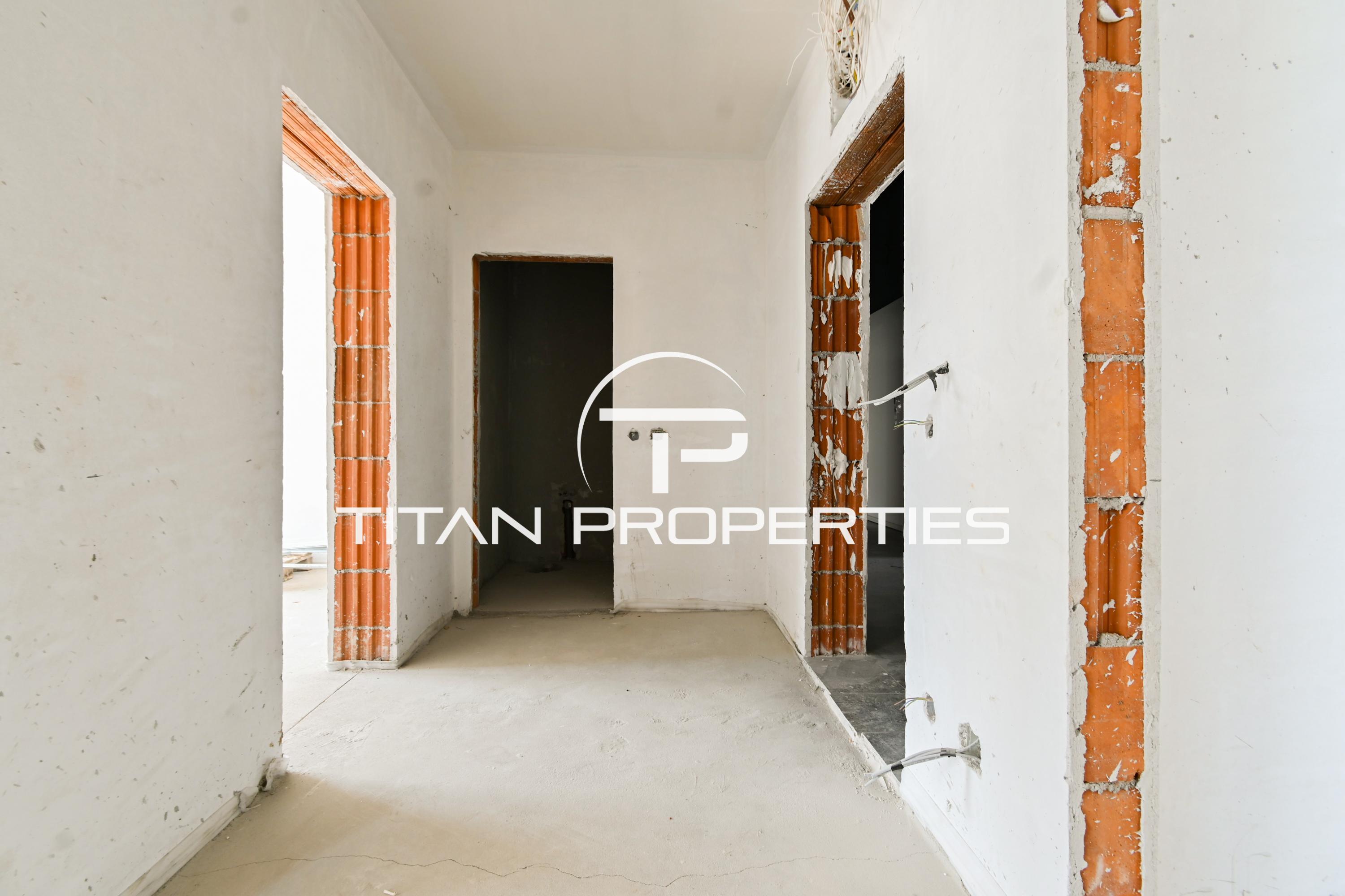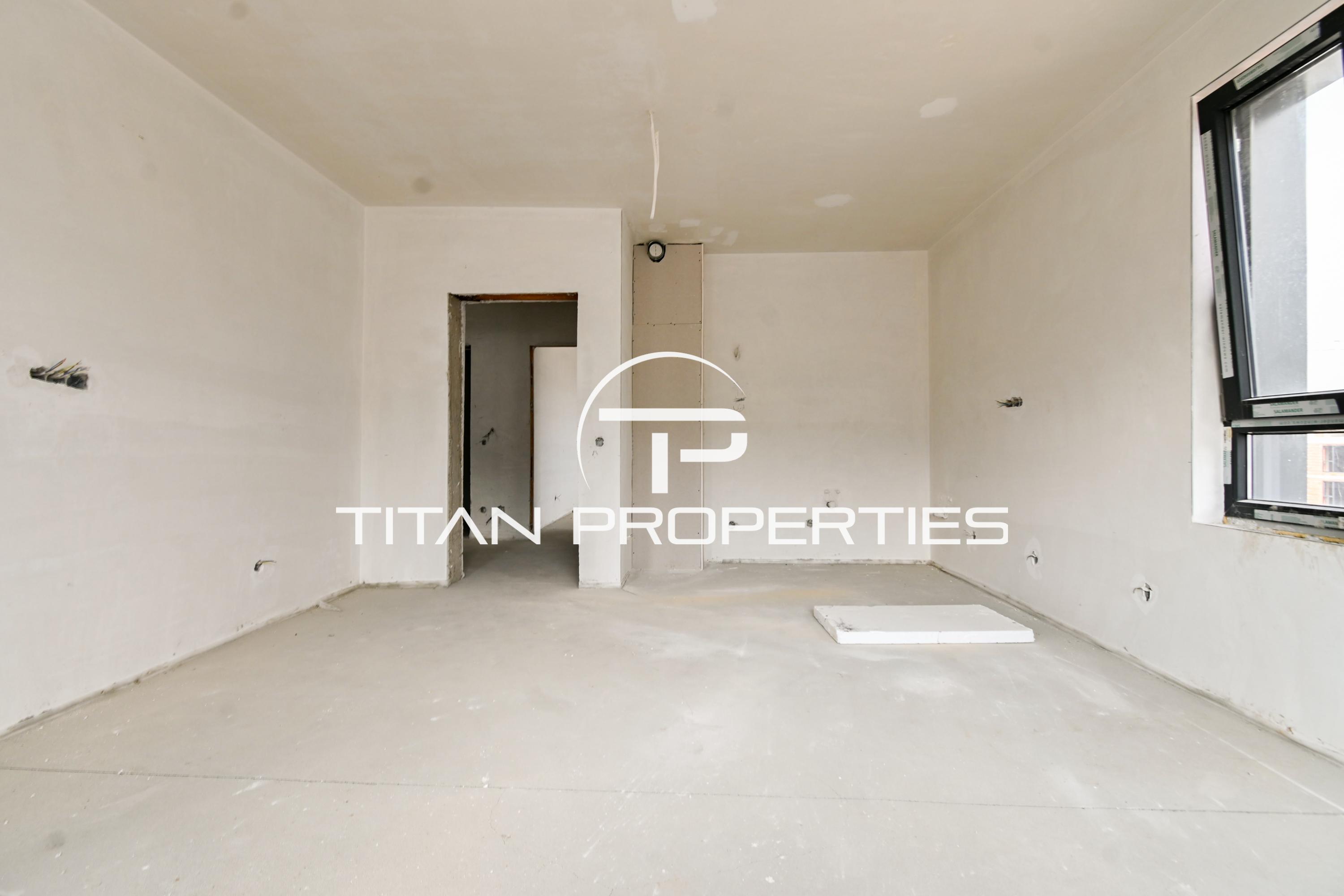 Титан Пропъртис офис - Черни връх с радост предлага на Вашето внимание тристаен апартамент за продажба в кв. Малинова долина, София. Жилището със застроена площ от 82 кв.м е разположено на 3-ти етаж в нова сграда на етап Акт 15, която ще бъде въведена в експлоатация края на 2026 г. Източно/южно изложение гарантира естествена светлина през целия ден. Разпределението включва входно антре, хол с кухненски бокс, две спални, две санитарни възела, тераса и мазе. Апартаментът е завършен "до ключ" и предлага отопление на електричество.