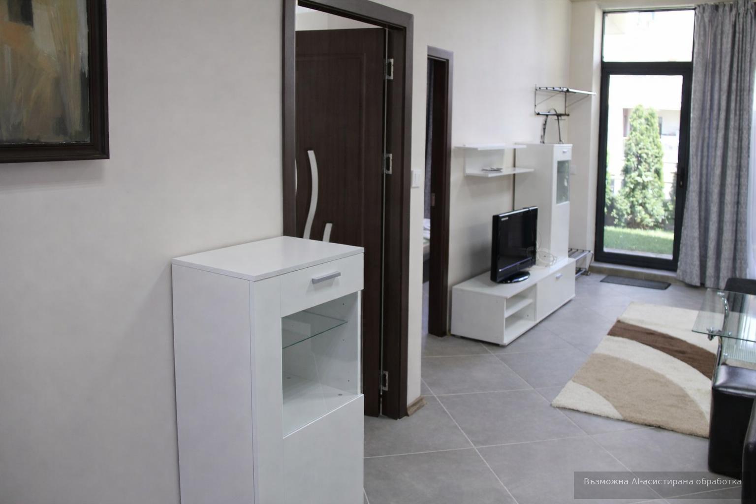 Титан Пропъртис офис бул.България с радост предлага на Вашето внимание тристаен апартамент за продажба в кв. Симеоново. Жилището е със застроена площ 63 кв.м и се намира на партерен етаж в нова пететажна сграда. Изложението Изток/Юг осигурява приятна светлина през целия ден. Всекидневна с кухненски кът, две спални, малък коридор и баня с тоалетна са разпределени функционално и стилно. Обзаведен и с електрическо отопление, апартаментът е част от затворен комплекс, който предоставя допълнителна сигурност и спокойствие. Модерно изпълнение и практично разпределение правят това жилище отличен избор за постоянен дом.
