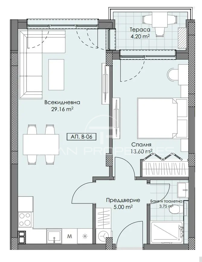 ДВУСТАЕН АПАРТАМЕНТ С АКТ 14 !!! Титан Пропъртис представя на вашето внимание двустаен апартамент в модерен жилищен комплекс, разположен в новостроящия се и бързо развиващ се квартал Остромила.Разполага с 1,5 дка зелени площи,Контролиран достъп и 24/7 видеонаблюдение за максимална безопасност и спокойствие,В рамките на комплекса ще има магазин за хранителни стоки и кафе-бар, предоставящи допълнително удобство за ежедневието на жителите.
