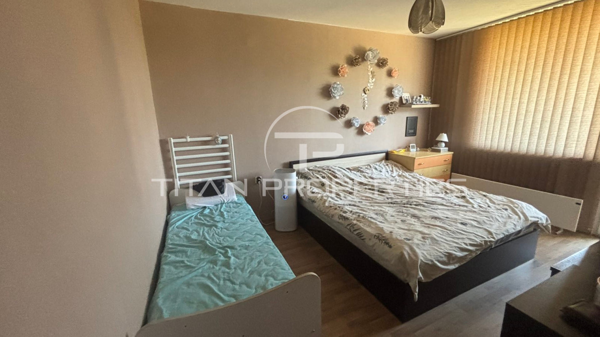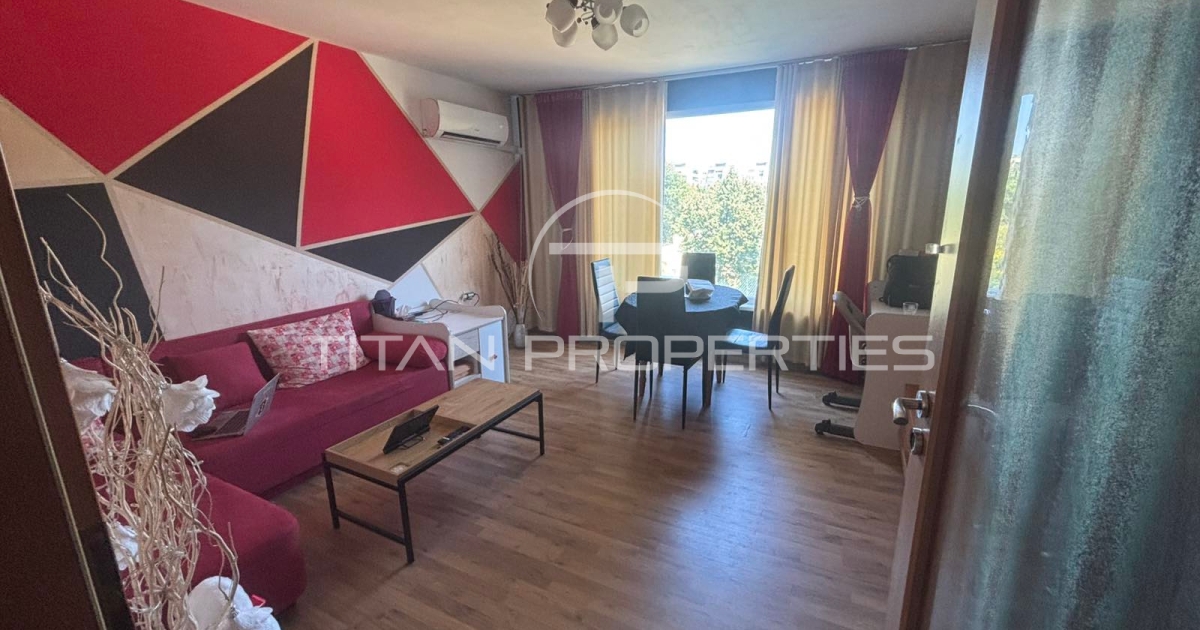 Титан Пропъртис има удоволствието да Ви представи обзаведен двустаен апаратамент, находящ се в кв. Христо Смирненски, в близост до търговски обекти, магазини и аптеки.
