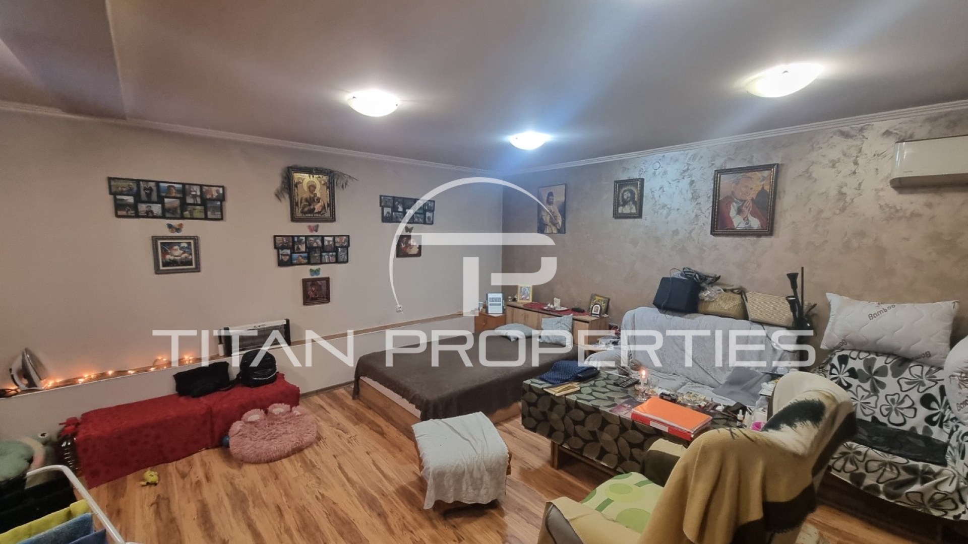 Първият имот представлява етаж от къща със сутерен с обща площ от 96 кв.м. в следното разпределение: просторен хол, кухня с тераса, уютна спалня, а в сутерена се намират допълнителна стая с тоалетна и кухня.